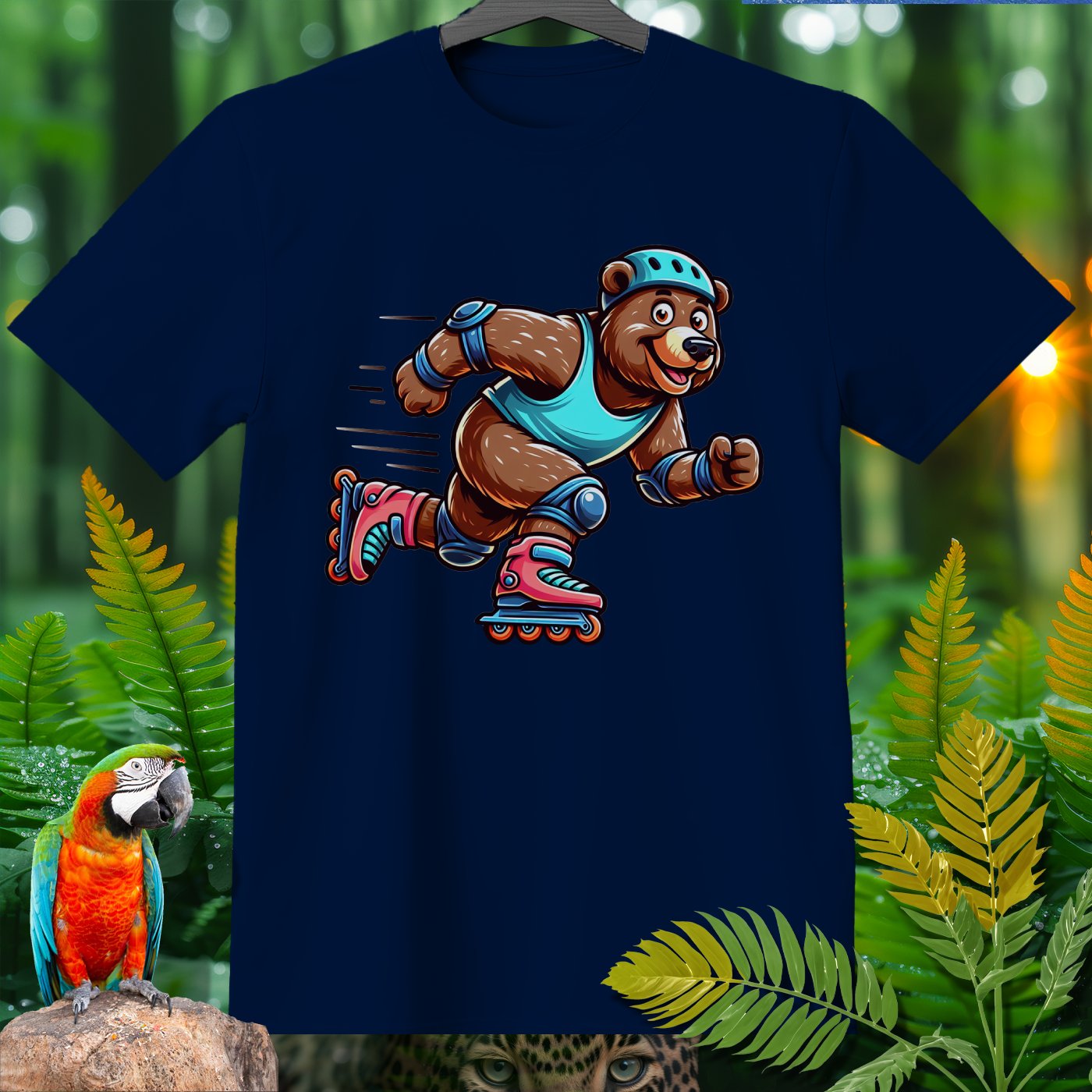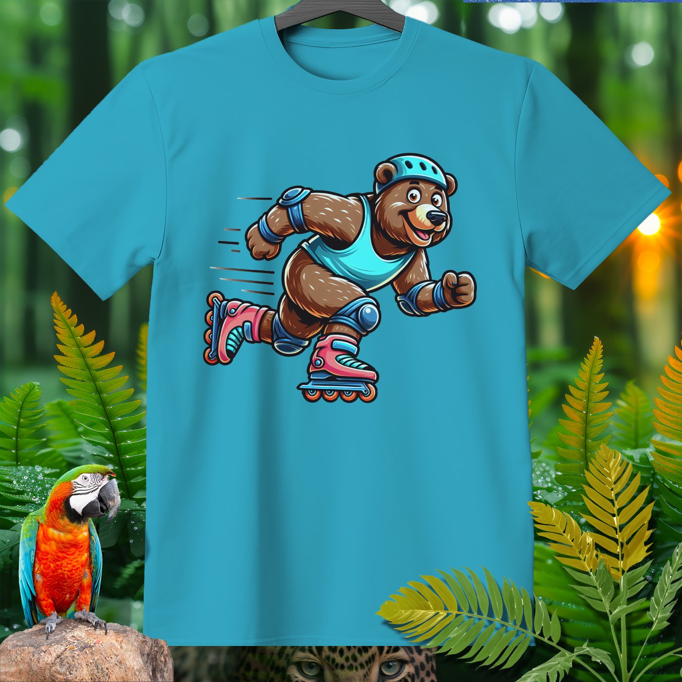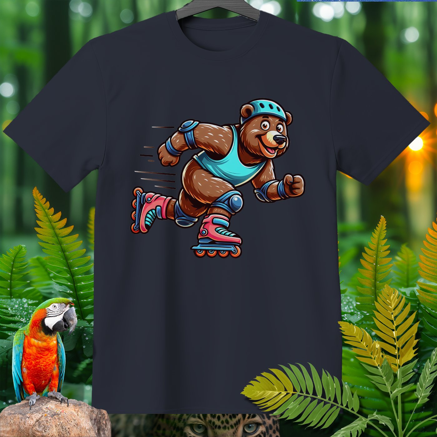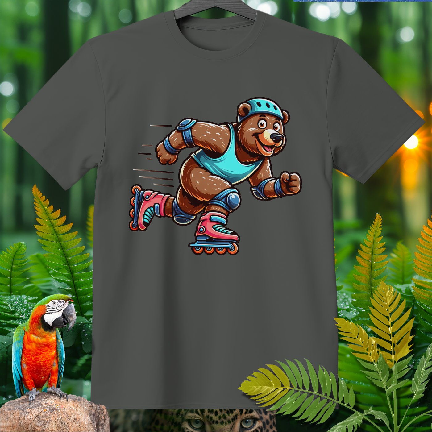 Introducing the Amazoomania collection, where animals embark on humorous and adventurous sports and activities! Featured here is an adventurous bear showing off its roller skating skills. This delightful design captures the fun essence of a dynamic bear engaged in the thrill of skating. The vivid and playful illustration emphasizes both fun and adventure, inviting you to embrace the A-Z of excitement with style. Perfect for adding a cheerful dash to your clothing and accessories!