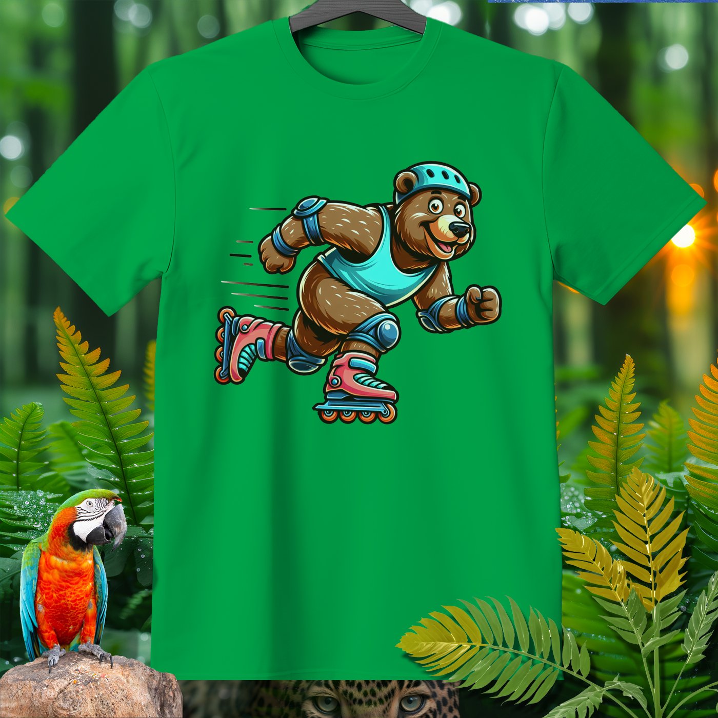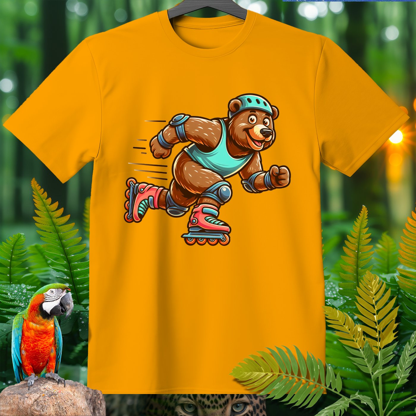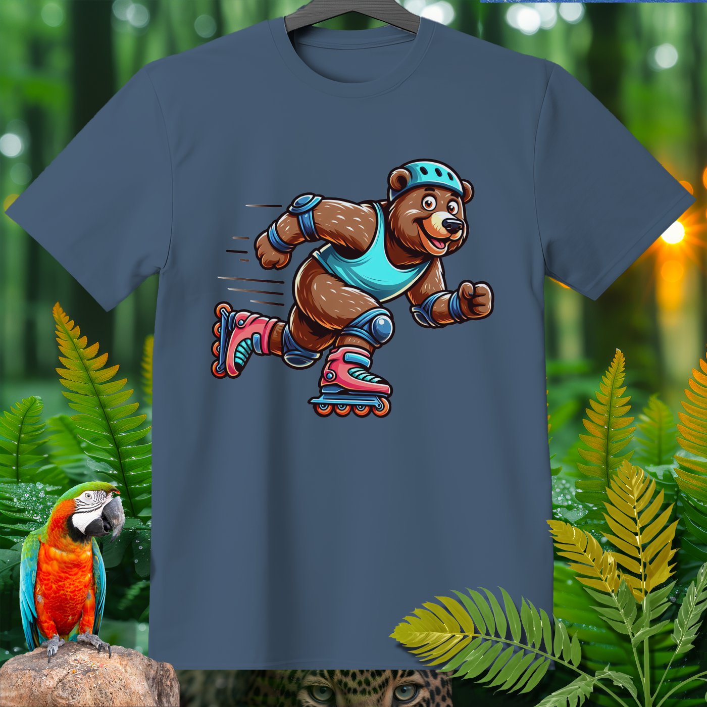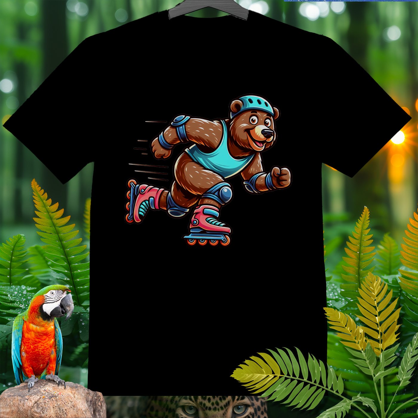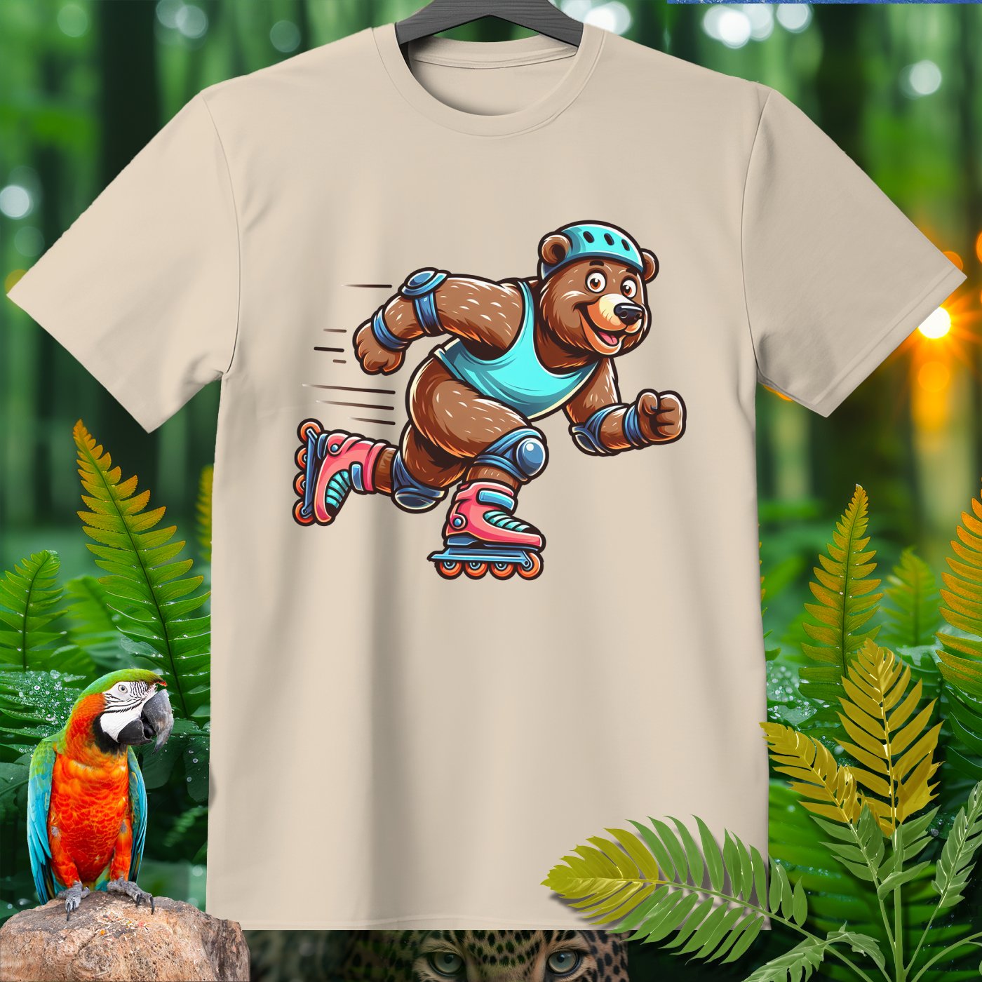 Introducing the Amazoomania collection, where animals embark on humorous and adventurous sports and activities! Featured here is an adventurous bear showing off its roller skating skills. This delightful design captures the fun essence of a dynamic bear engaged in the thrill of skating. The vivid and playful illustration emphasizes both fun and adventure, inviting you to embrace the A-Z of excitement with style. Perfect for adding a cheerful dash to your clothing and accessories!