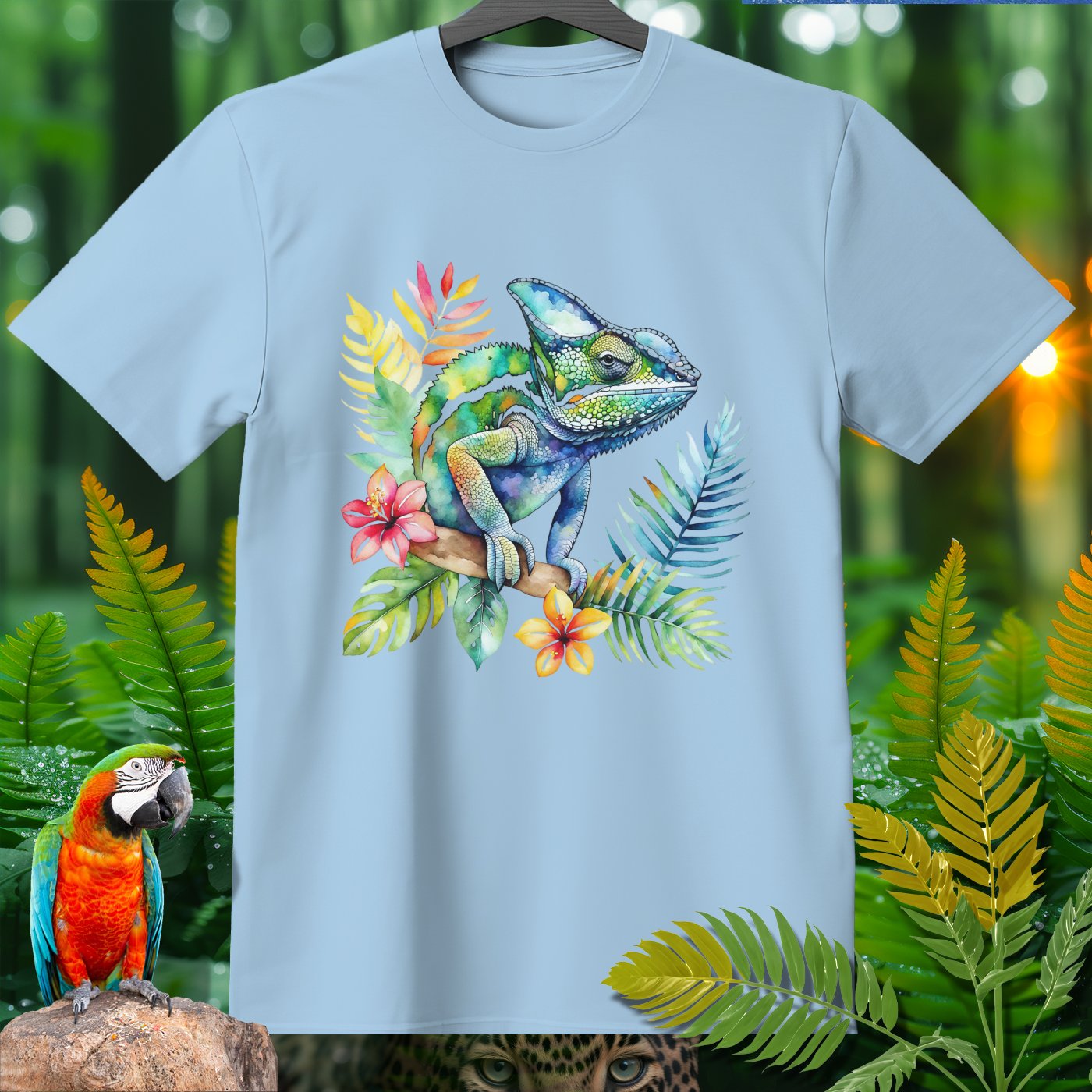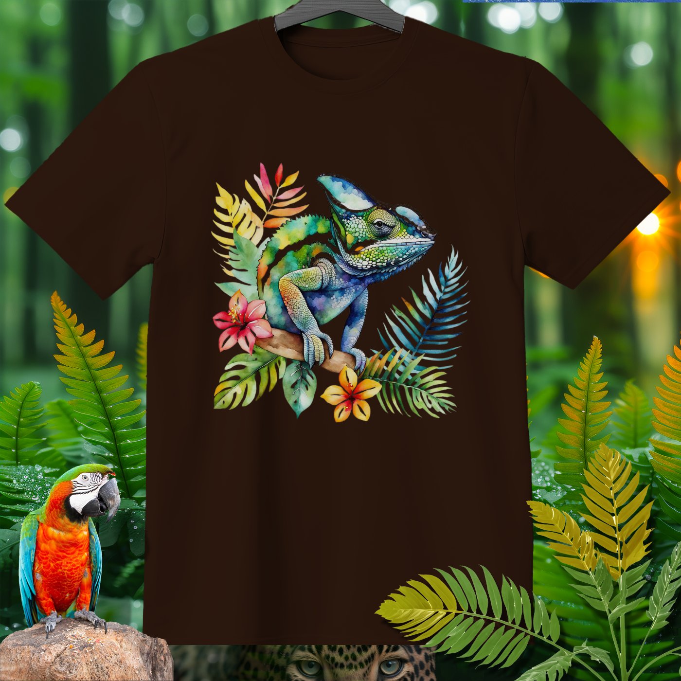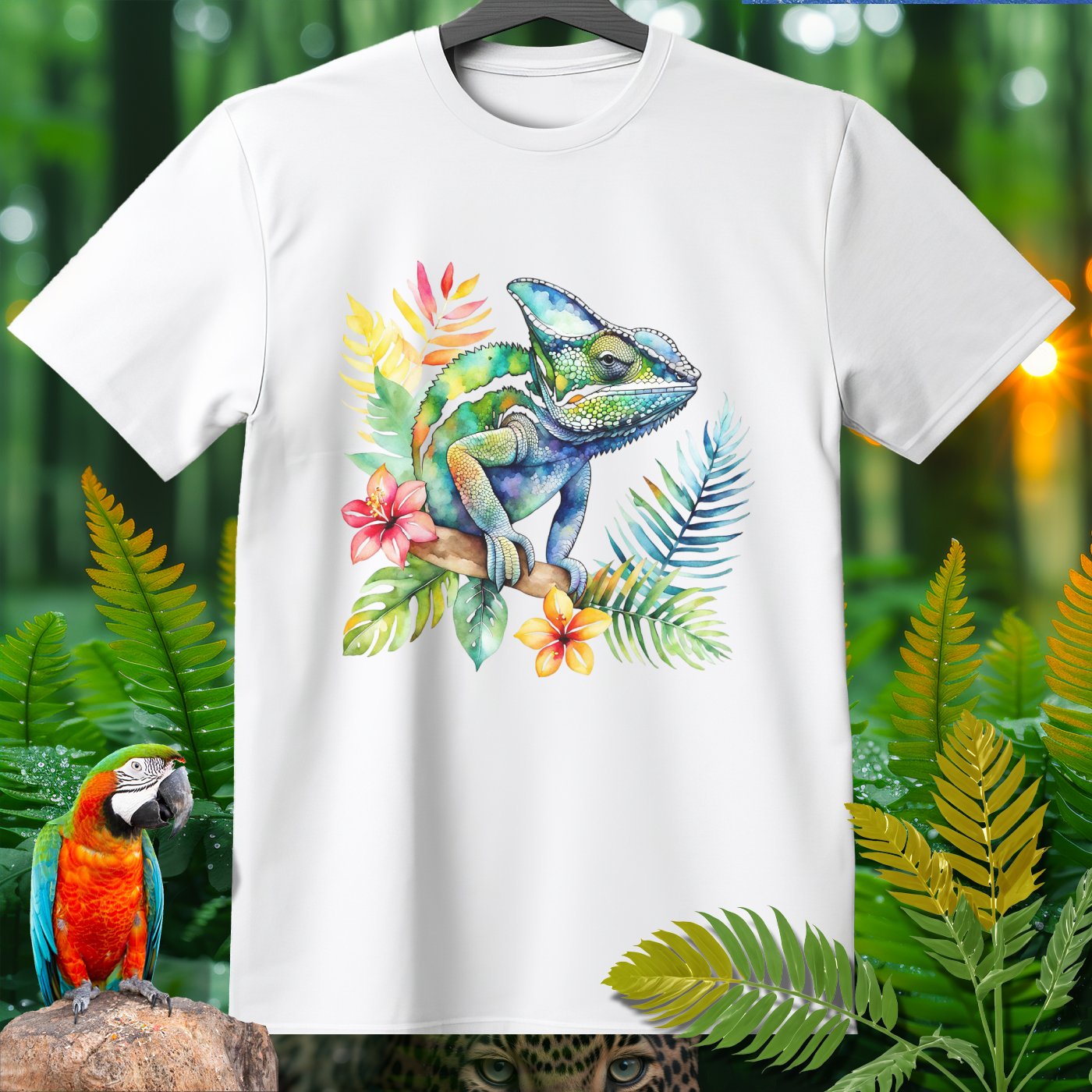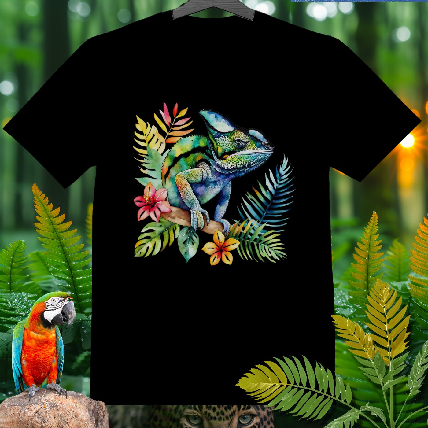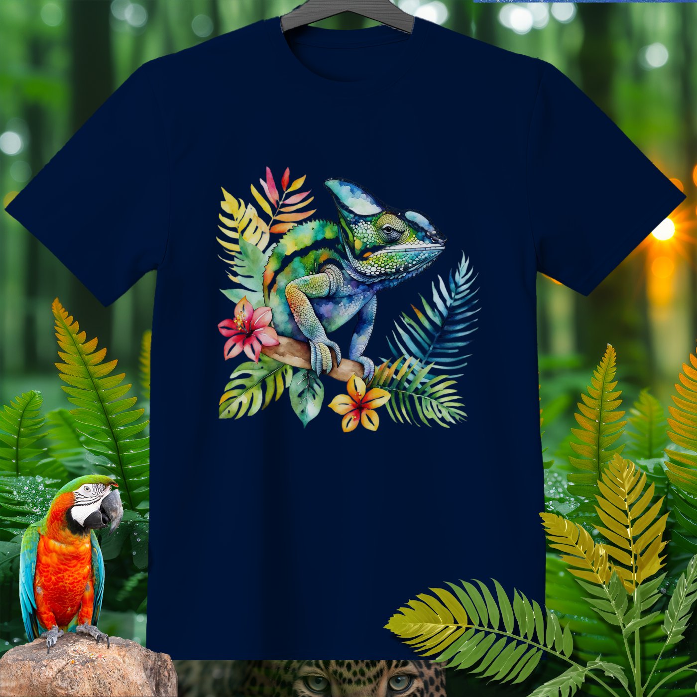 Step into the vibrant world of AmazooMania with our stunning chameleon T-shirt. This beautifully detailed design showcases a colorful chameleon surrounded by tropical foliage, capturing the essence of the wild things these fascinating creatures do when we aren't watching. Made with premium quality fabric, this T-shirt offers both comfort and durability, making it a perfect addition to your casual wardrobe. Whether you are heading out for an adventure or simply chilling at home, this eye-catching piece will make a striking statement. Ideal for nature lovers and animal enthusiasts alike, embrace the wild with AmazooMania’s unique and artistic designs.