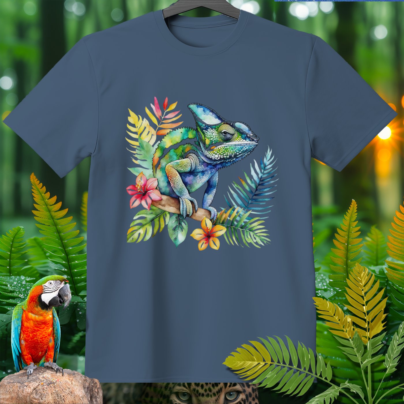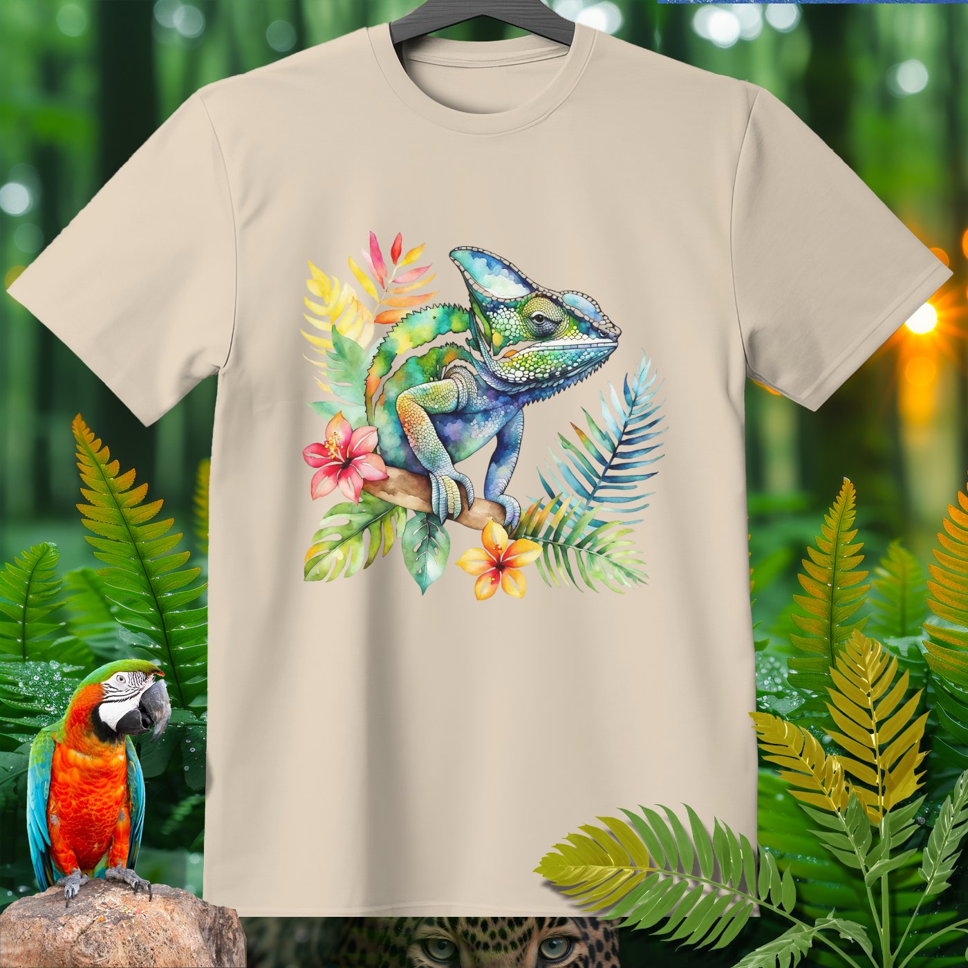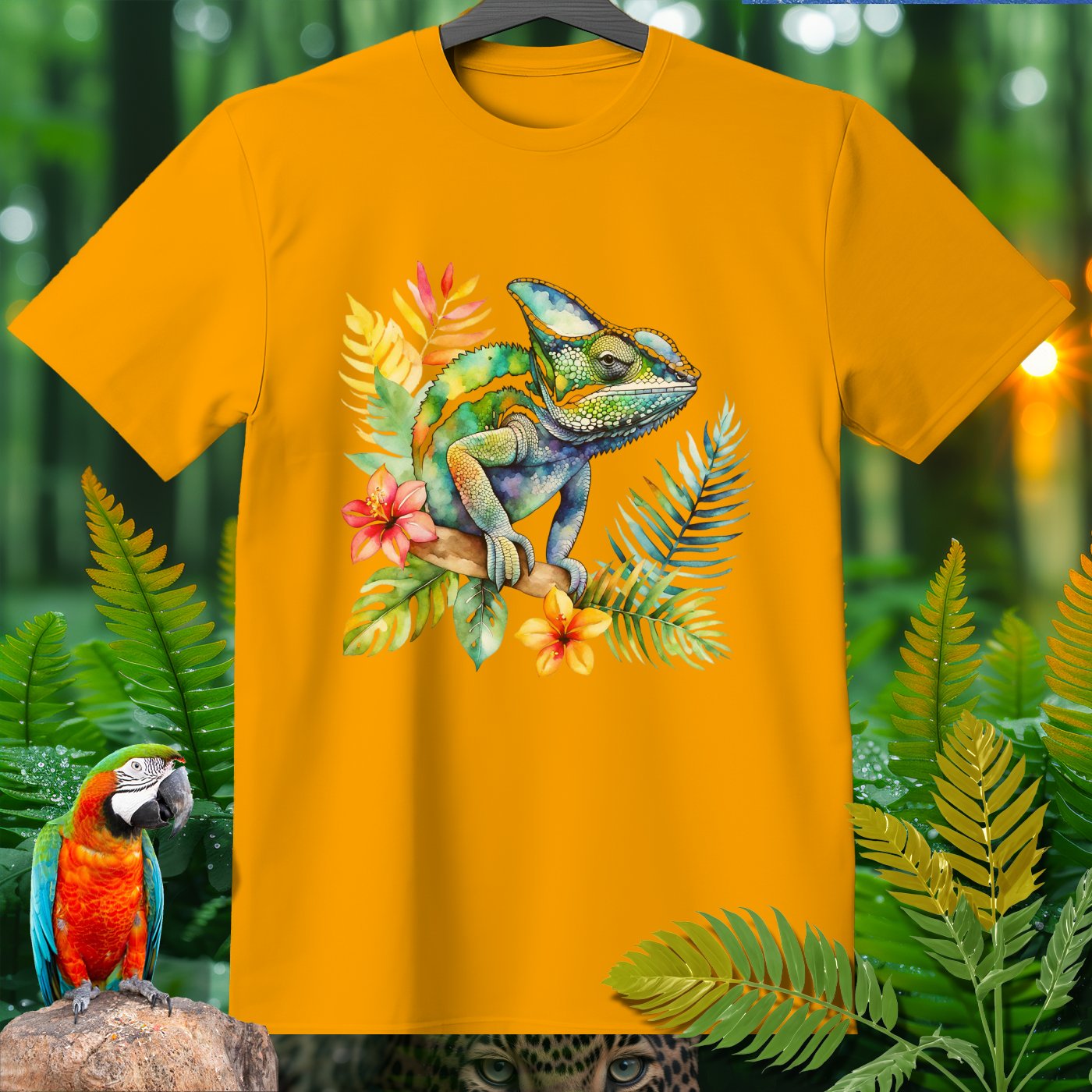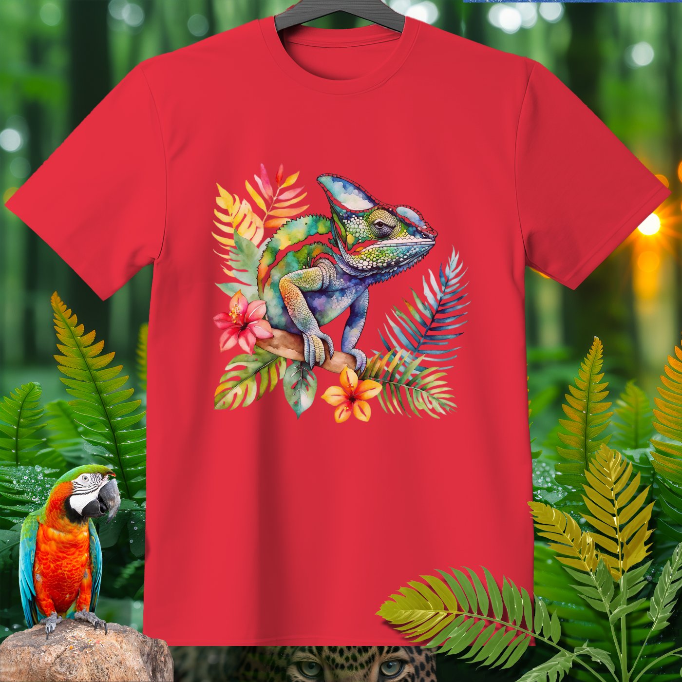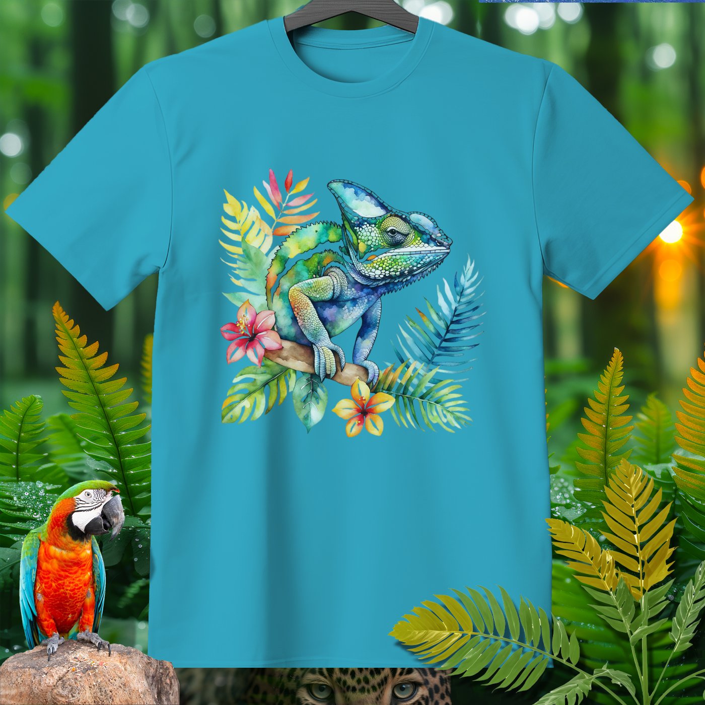 Step into the vibrant world of AmazooMania with our stunning chameleon T-shirt. This beautifully detailed design showcases a colorful chameleon surrounded by tropical foliage, capturing the essence of the wild things these fascinating creatures do when we aren't watching. Made with premium quality fabric, this T-shirt offers both comfort and durability, making it a perfect addition to your casual wardrobe. Whether you are heading out for an adventure or simply chilling at home, this eye-catching piece will make a striking statement. Ideal for nature lovers and animal enthusiasts alike, embrace the wild with AmazooMania’s unique and artistic designs.