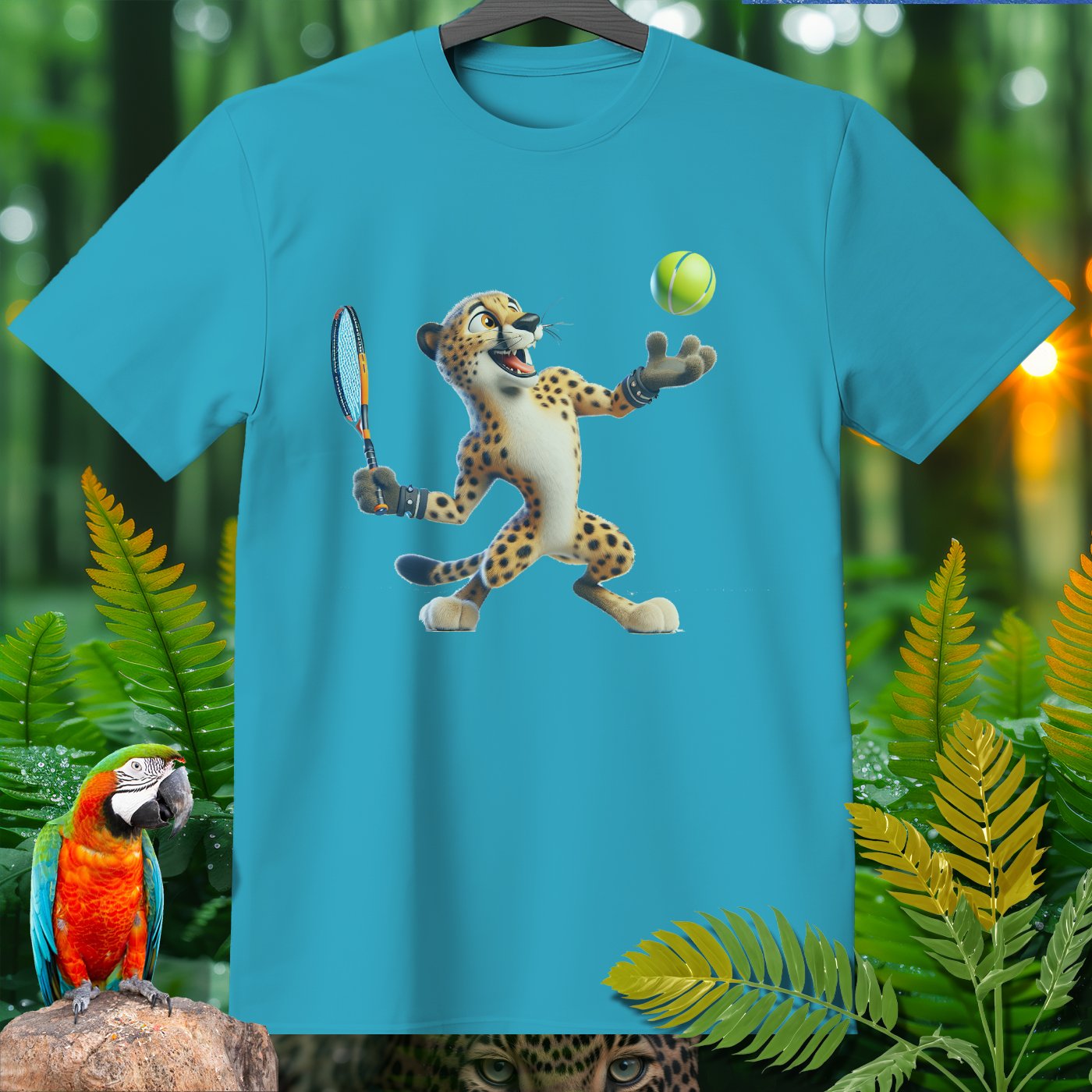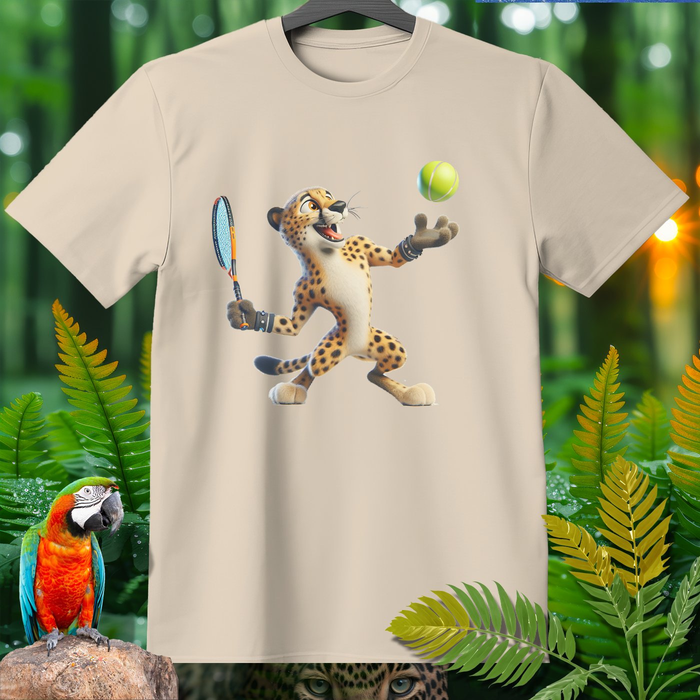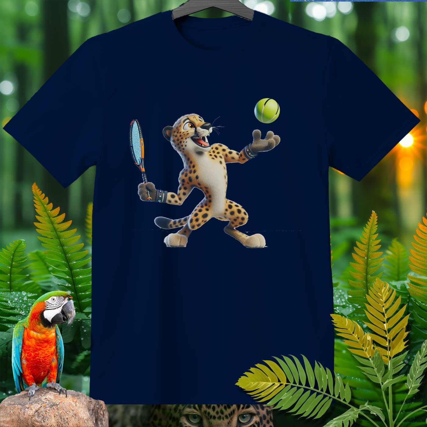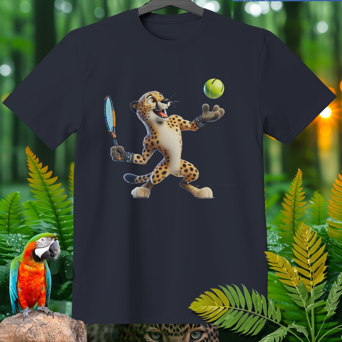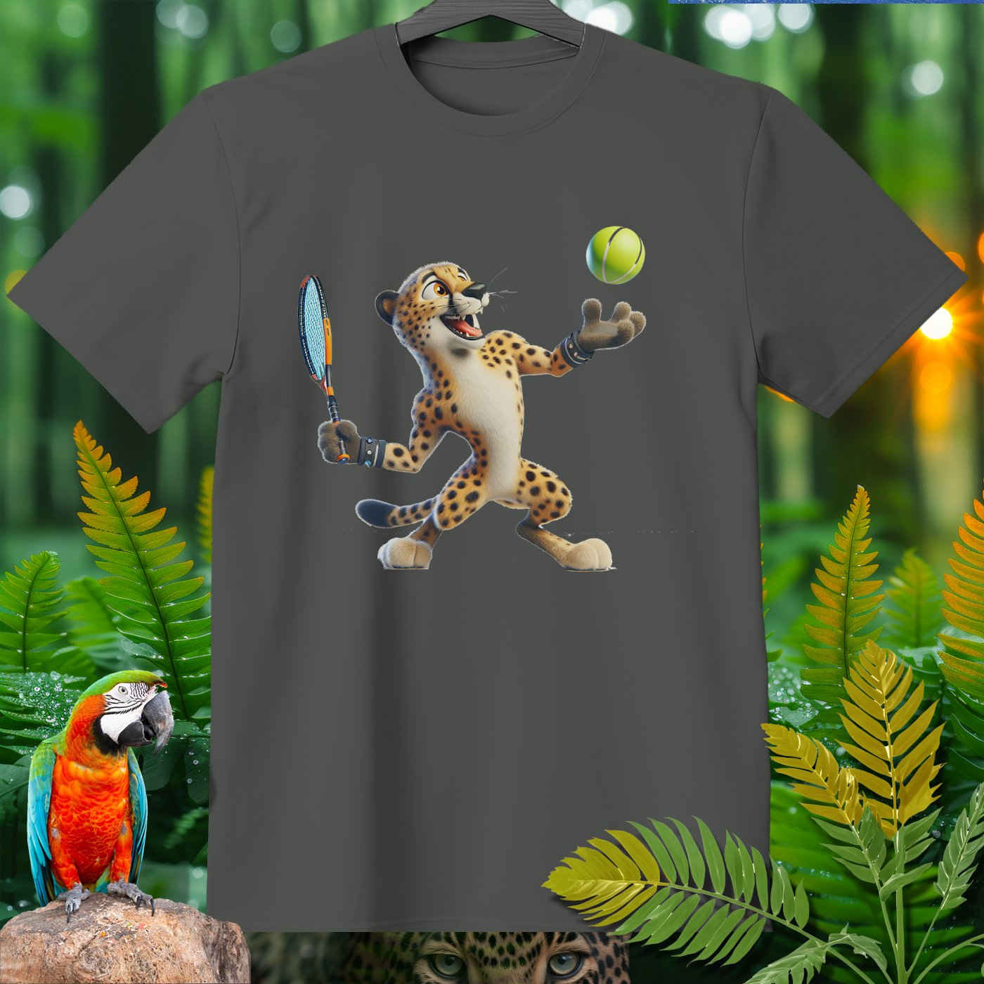 Introducing the Amazoomania collection, where animals engage in humorous and adventurous sports and activities! This fun and unique clothing piece showcases a lively cheetah playing an exciting game of tennis. The design captures the essence of joy and thrill, perfect for those who love to embrace the A-Z of excitement. Get ready to stand out with this adventurous and delightful addition to your wardrobe!