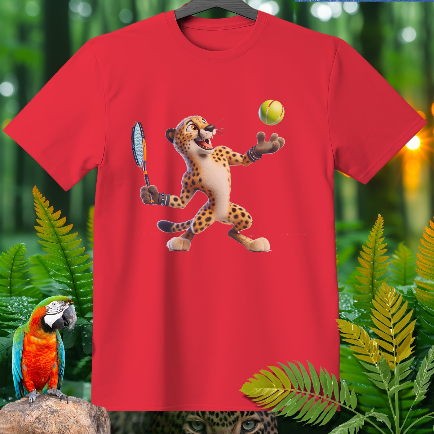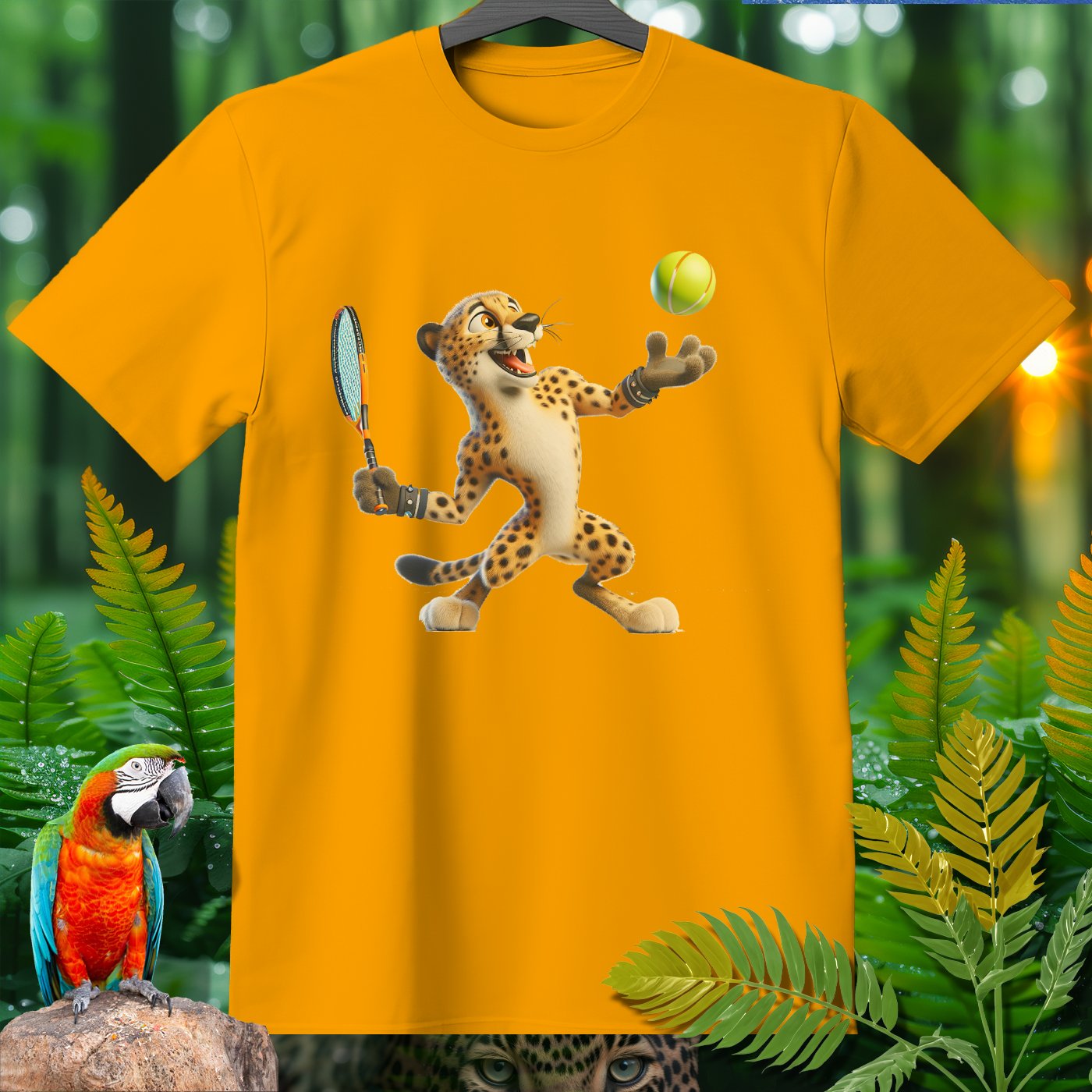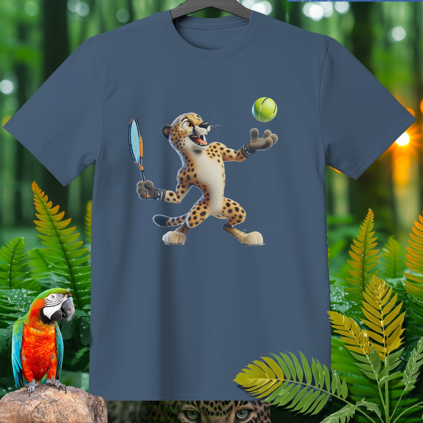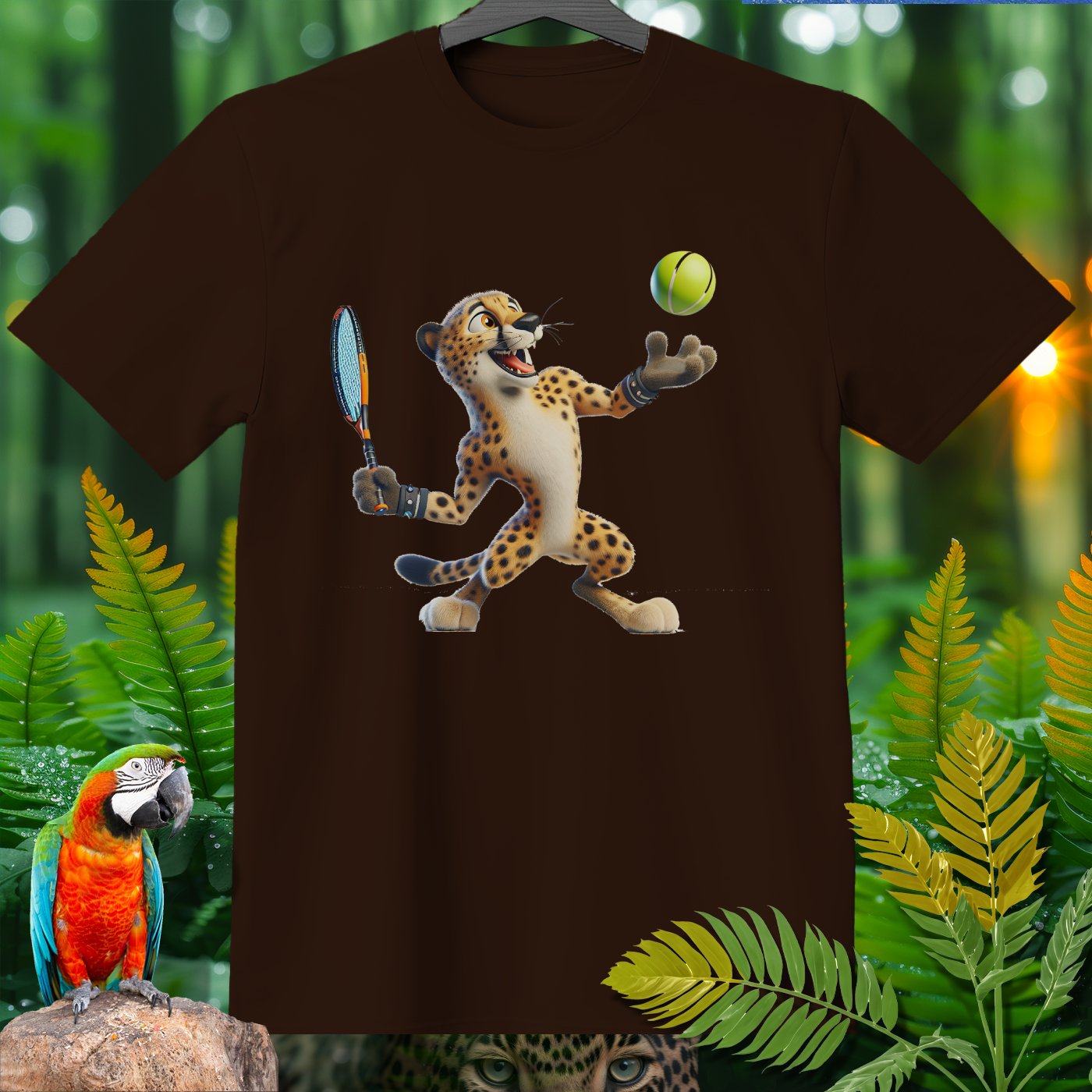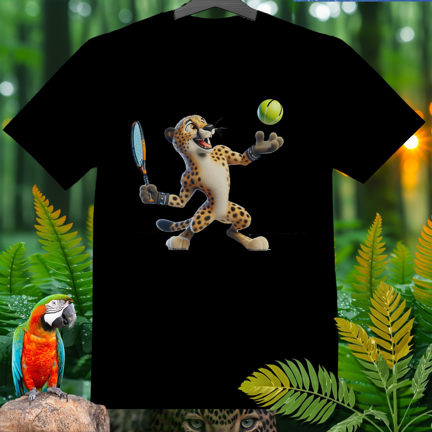 Introducing the Amazoomania collection, where animals engage in humorous and adventurous sports and activities! This fun and unique clothing piece showcases a lively cheetah playing an exciting game of tennis. The design captures the essence of joy and thrill, perfect for those who love to embrace the A-Z of excitement. Get ready to stand out with this adventurous and delightful addition to your wardrobe!