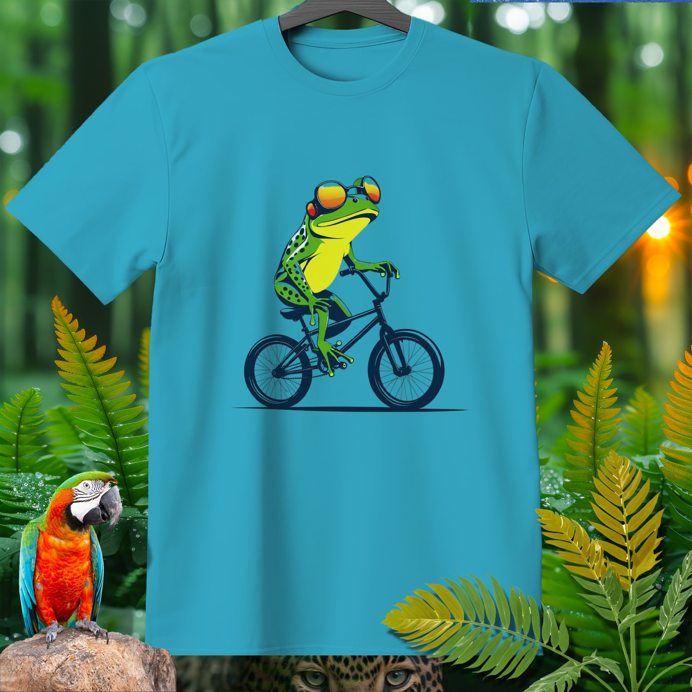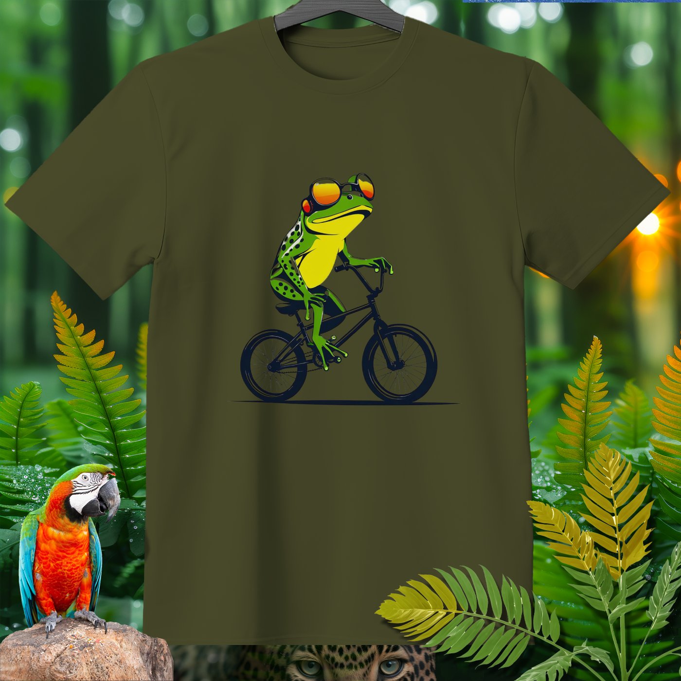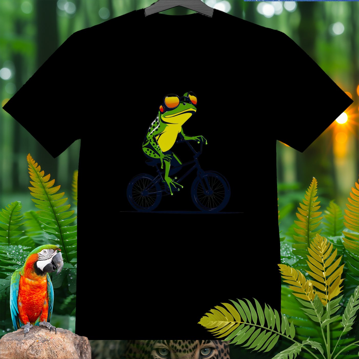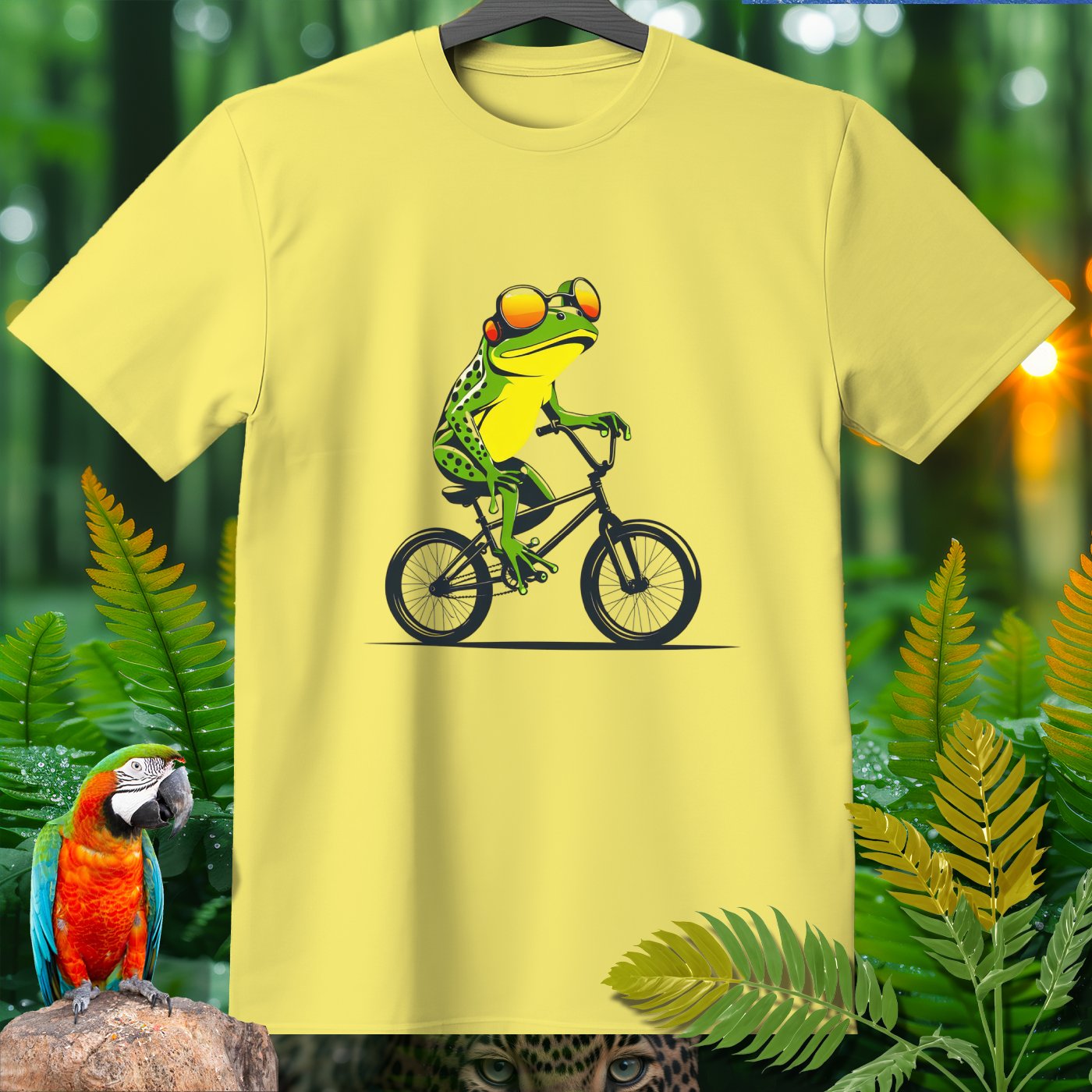 This T-Shirt from our Amazoomania Collection features a frog doing the craziest thing when we aren't watching! Meet our sporty frog who loves to ride his BMX in style. With a cool set of shades and a confident pose, this vibrant design is sure to make everyone smile. Ideal for sports enthusiasts and animal lovers alike, this tee is perfect for adding a fun twist to your casual wardrobe.