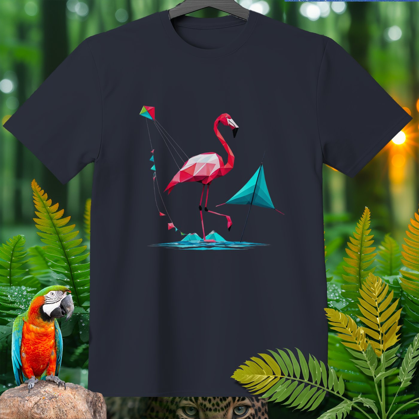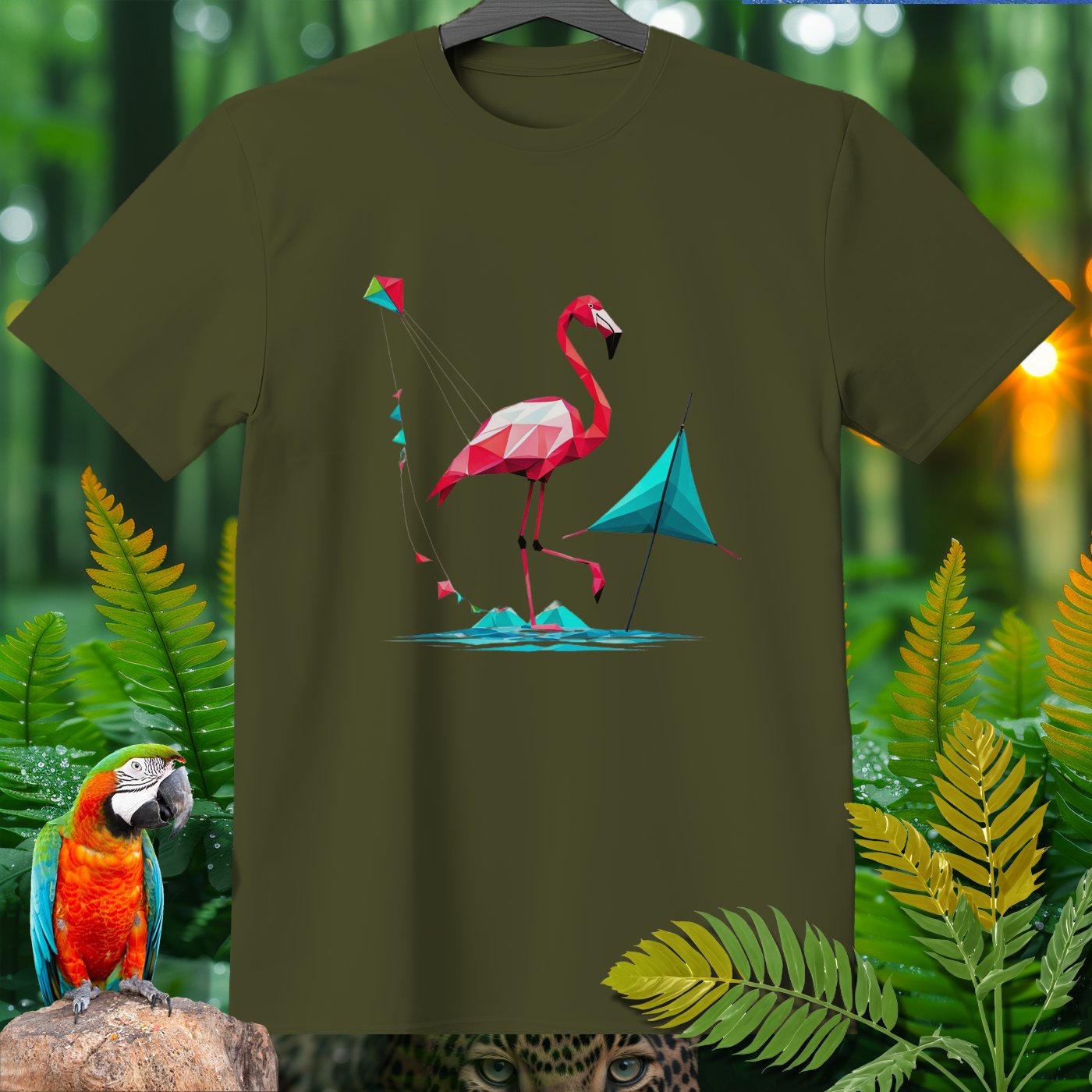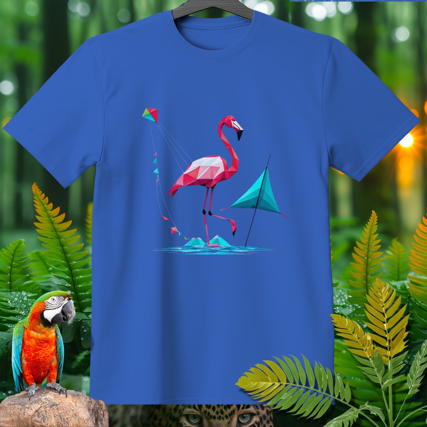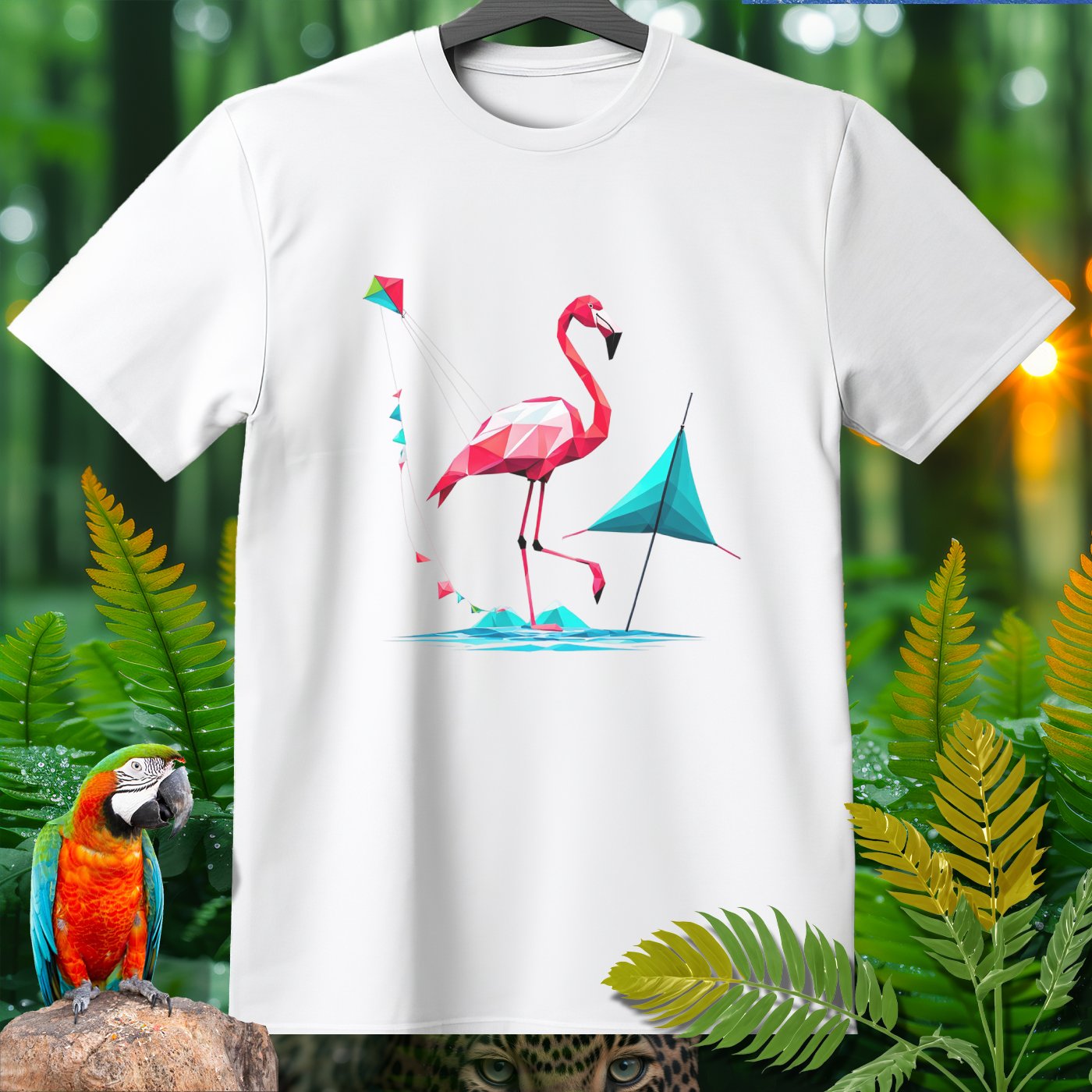 Step into a world of fun with our SPORT T-shirt from the Amazoomania Collection! Featuring a geometric flamingo flying a kite at the beach, this tee is perfect for adding a playful touch to your wardrobe. Ideal for sport enthusiasts and animal lovers alike, this shirt combines fashion and whimsy in the most delightful way possible. Whether you're hitting the gym or just lounging around, this SPORT T-shirt will keep you looking cool and feeling great. Don't miss out on this unique piece from our Amazoomania Collection, where animals do the craziest things when we aren't watching!