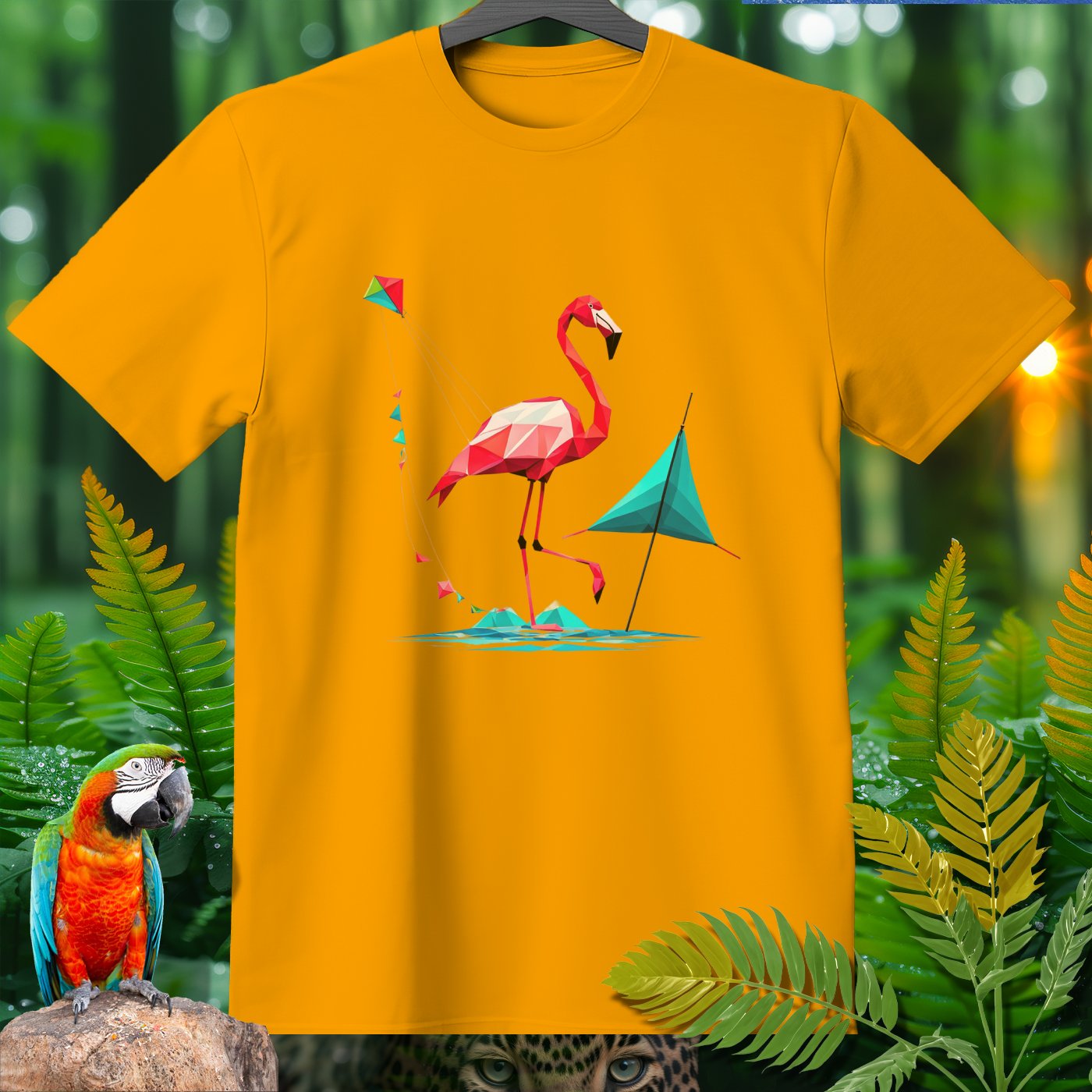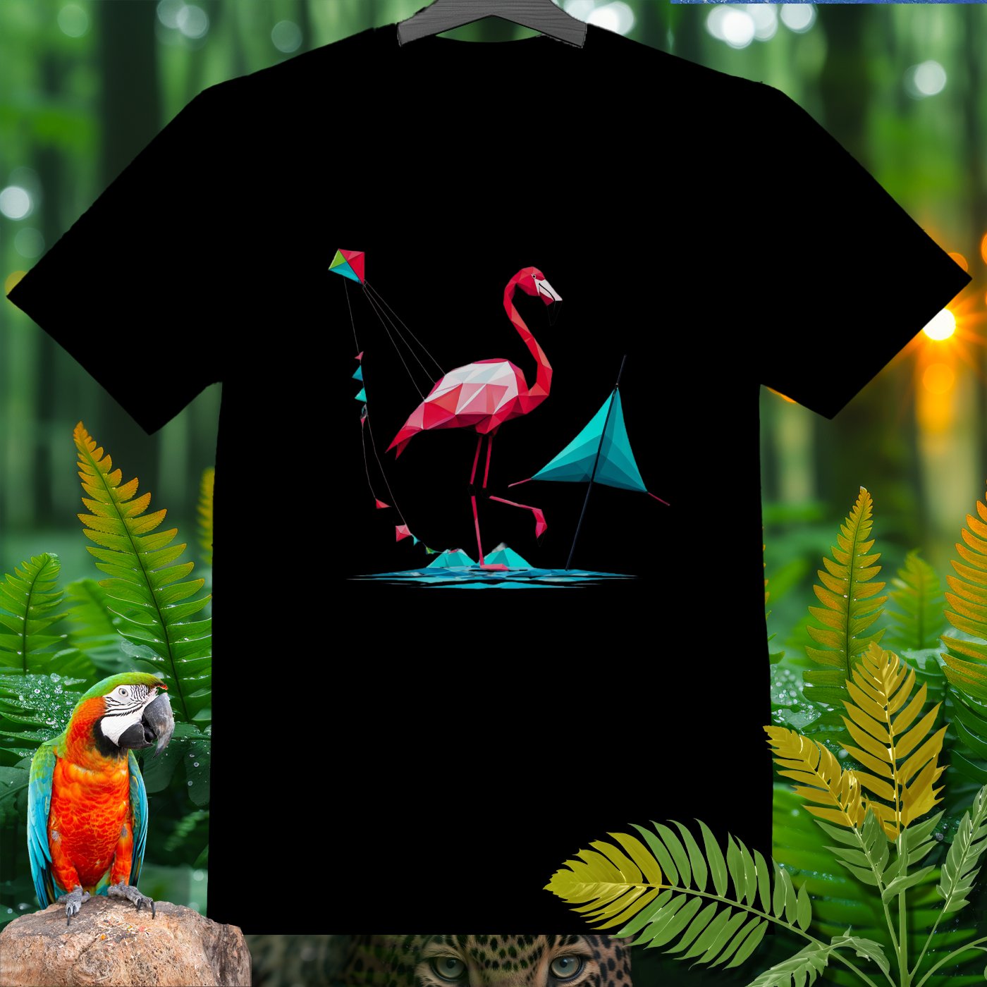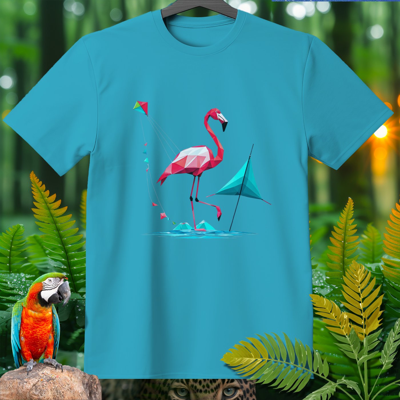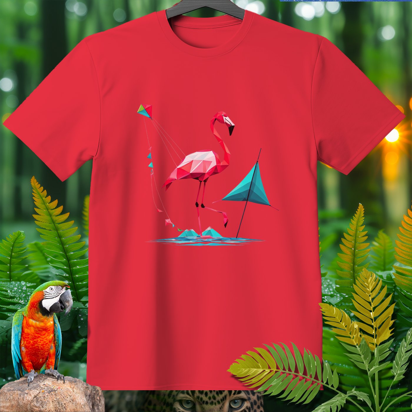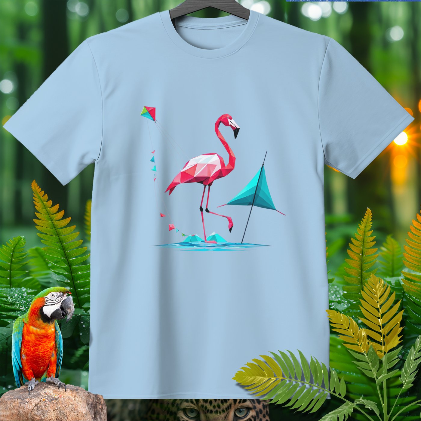Step into a world of fun with our SPORT T-shirt from the Amazoomania Collection! Featuring a geometric flamingo flying a kite at the beach, this tee is perfect for adding a playful touch to your wardrobe. Ideal for sport enthusiasts and animal lovers alike, this shirt combines fashion and whimsy in the most delightful way possible. Whether you're hitting the gym or just lounging around, this SPORT T-shirt will keep you looking cool and feeling great. Don't miss out on this unique piece from our Amazoomania Collection, where animals do the craziest things when we aren't watching!