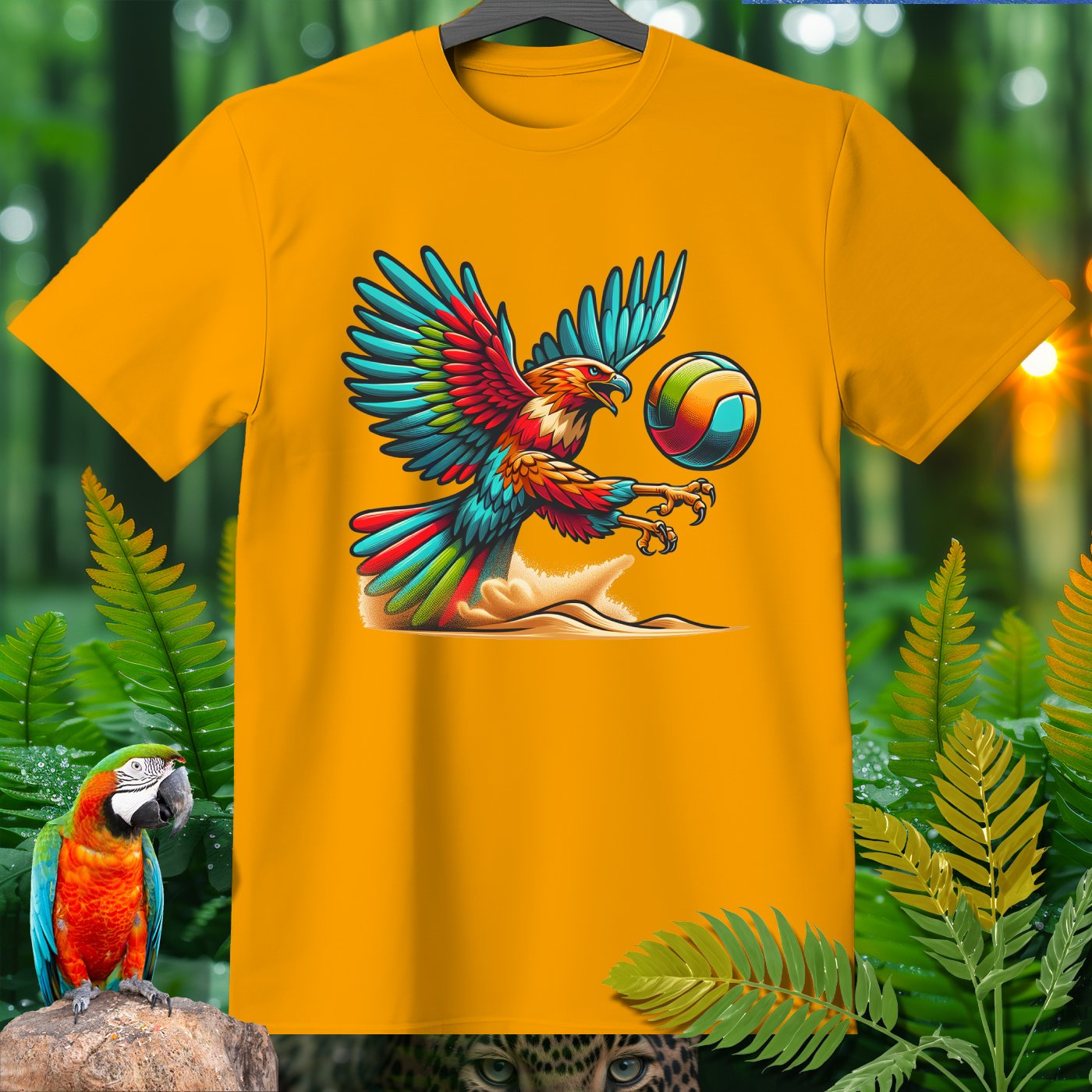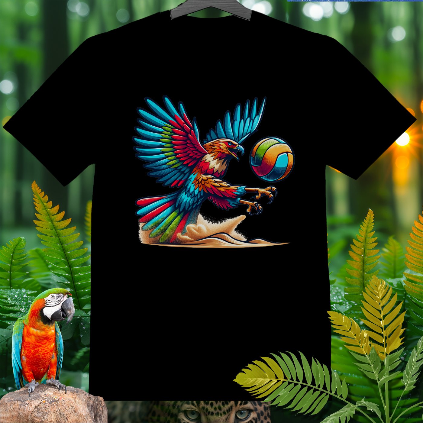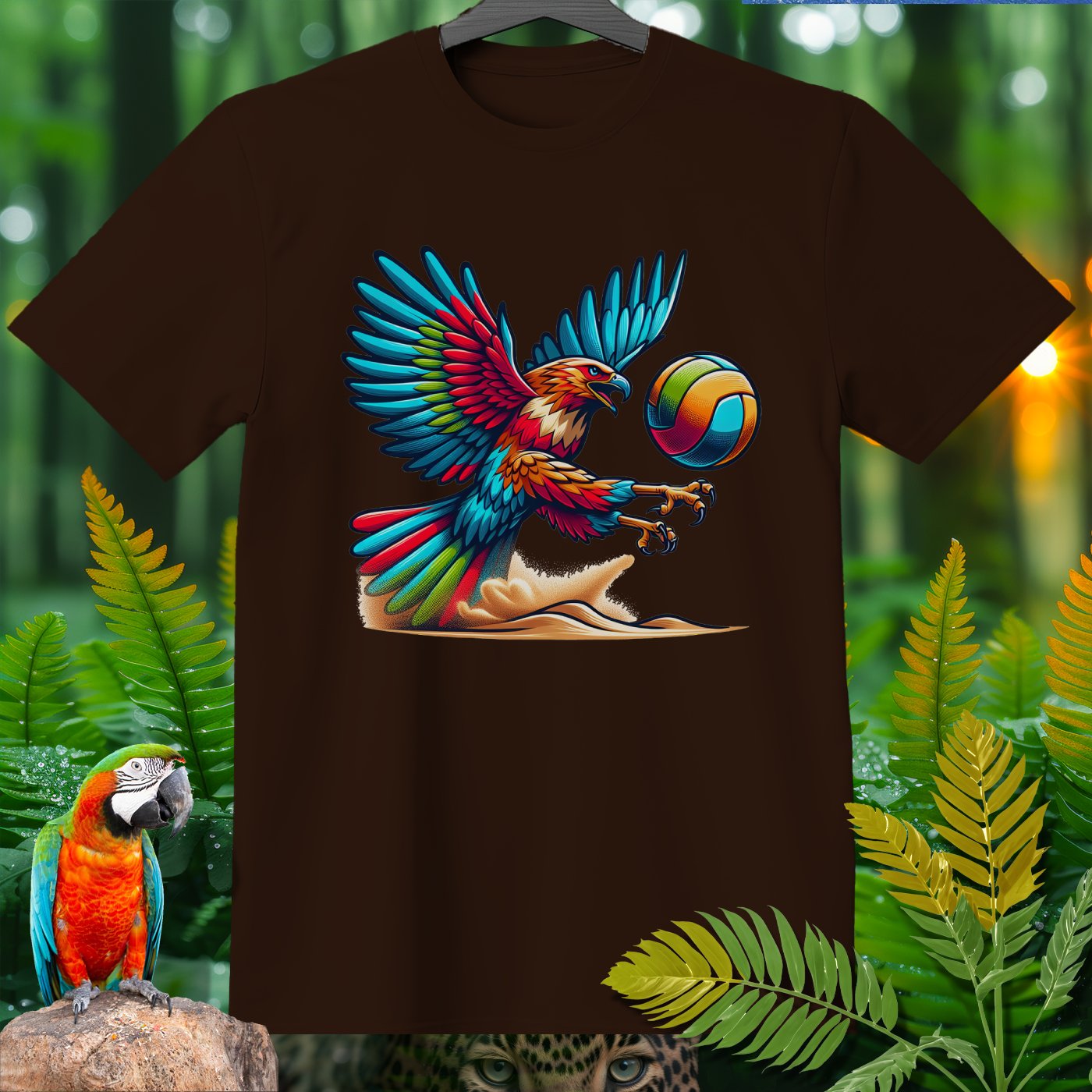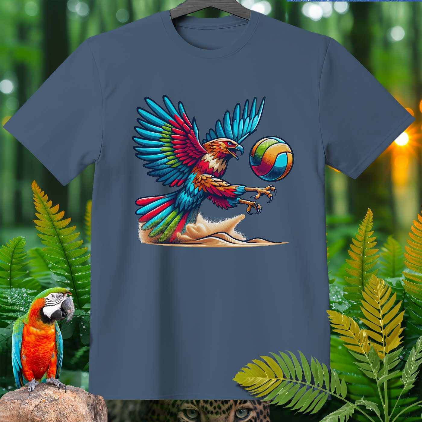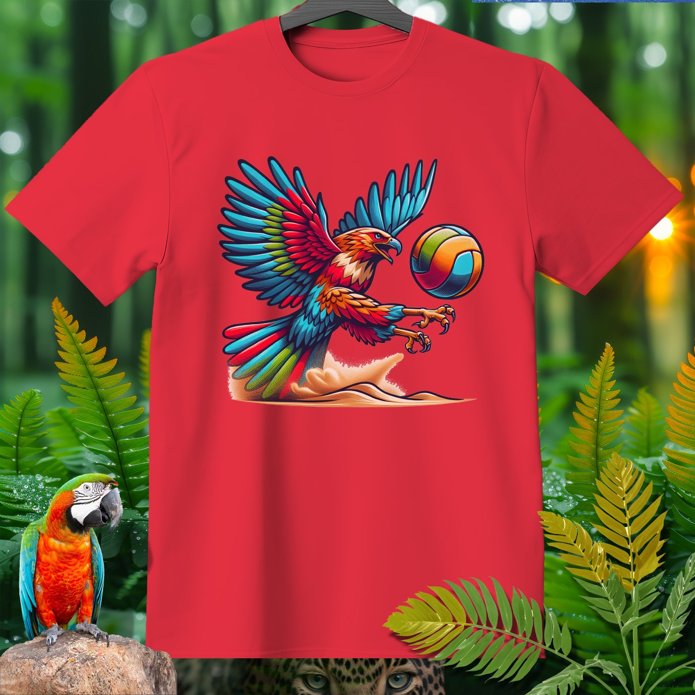 Introducing the Amazoomania collection, where whimsical woodland creatures take on thrilling sports escapades! This vibrant clothing piece features a majestic eagle engaged in a spirited game of volleyball. The intricately detailed design captures the eagle's fierce determination and the exhilarating energy of the game. Perfect for those who love to infuse their wardrobe with unique, fun, and adventurous elements. Whether you're a sports enthusiast or an animal lover, this piece invites you to embrace the A-Z of excitement and embark on your own adventures.