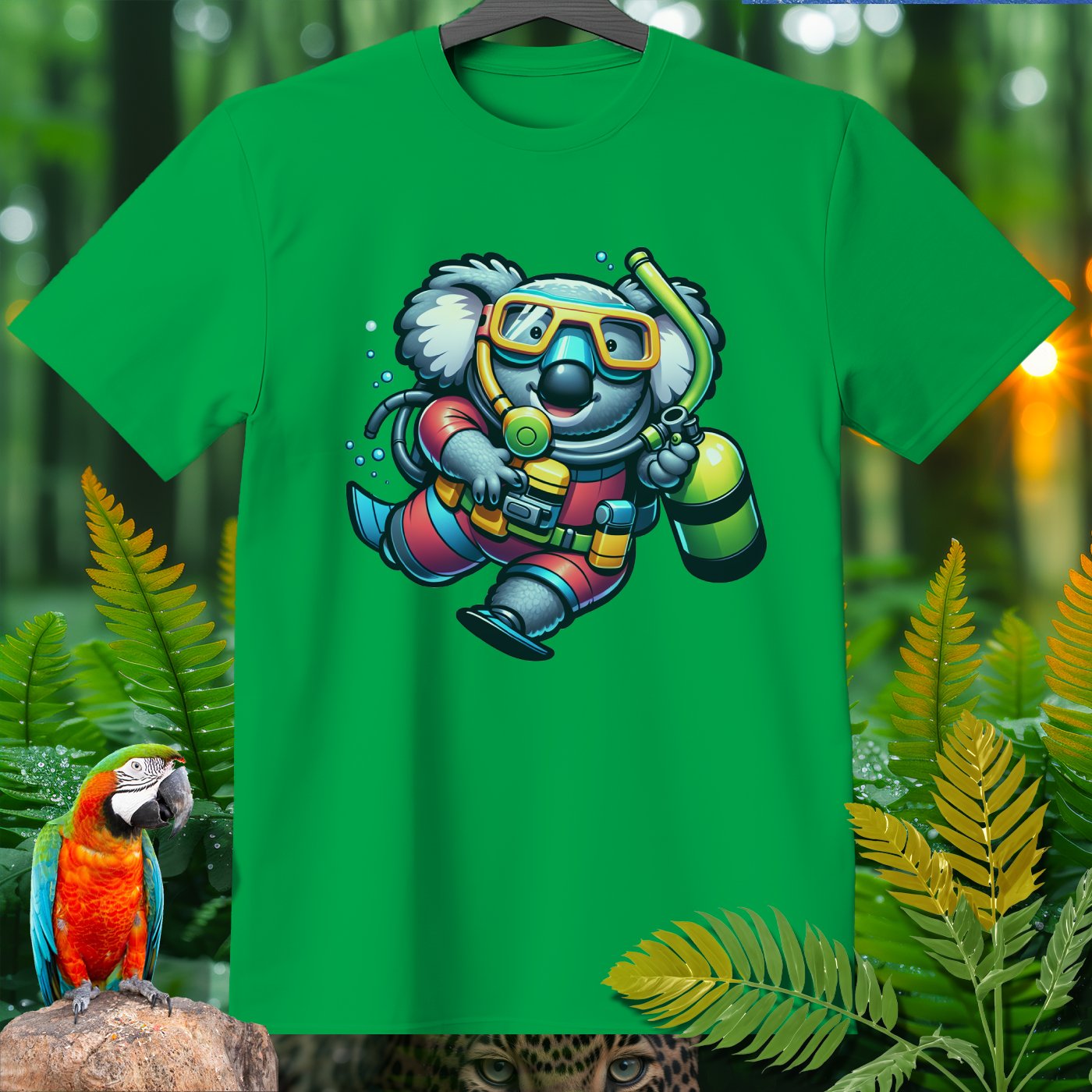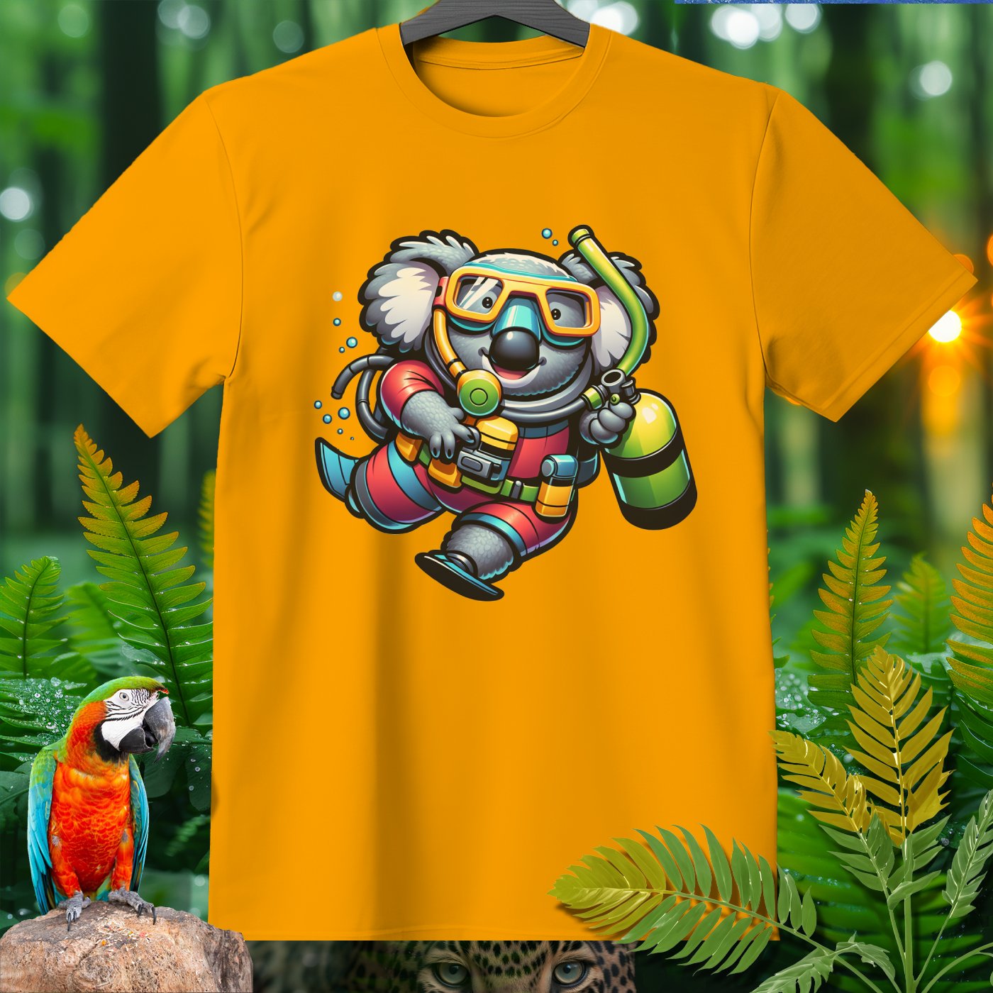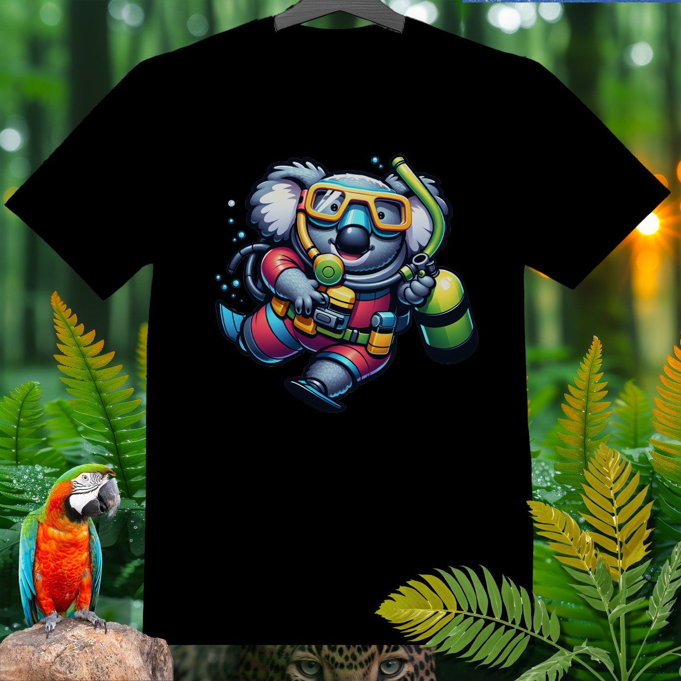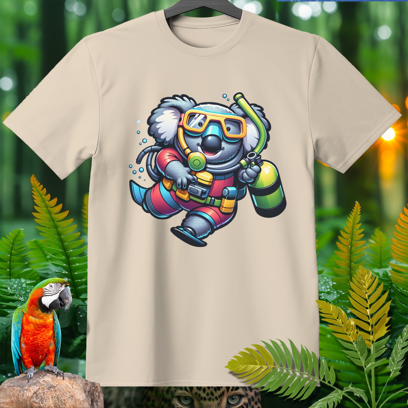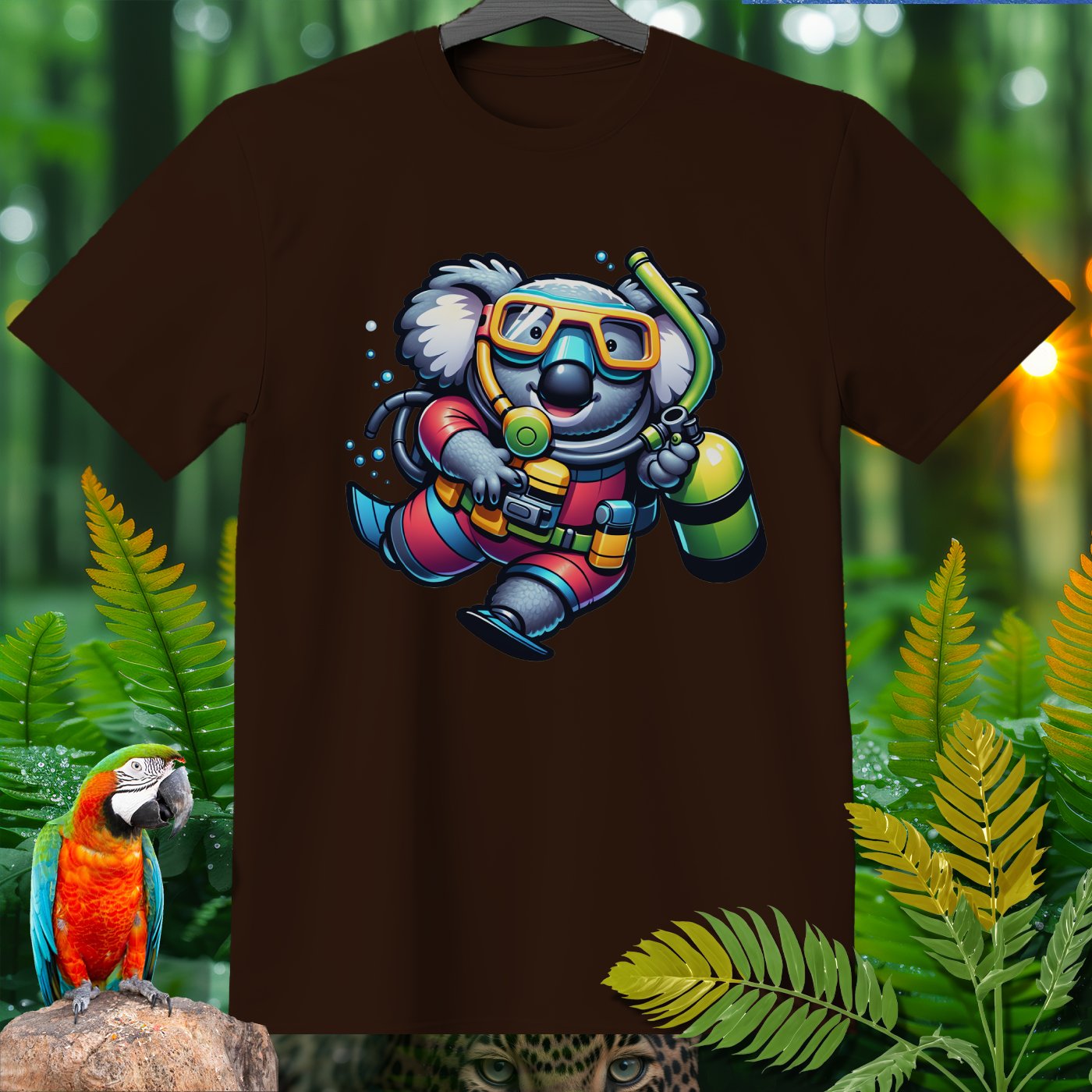 Dive into the whimsical world of the Amazoomania collection with our unique, fun, and adventurous designs! Introducing a delightful koala, transformed into a daring deep-sea diver, bringing a splash of excitement to your wardrobe. This playful design captures the adorable koala in full scuba gear, exploring the depths with a cheerful charm. Perfect for those who love to embrace the A-Z of excitement, our clothing item is a must-have for anyone looking to add a touch of humor and adventure to their style. Join the Amazoomania adventure today!
