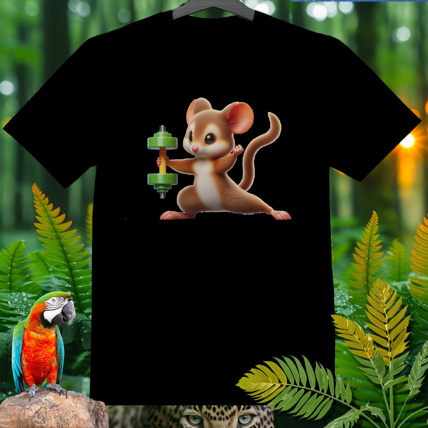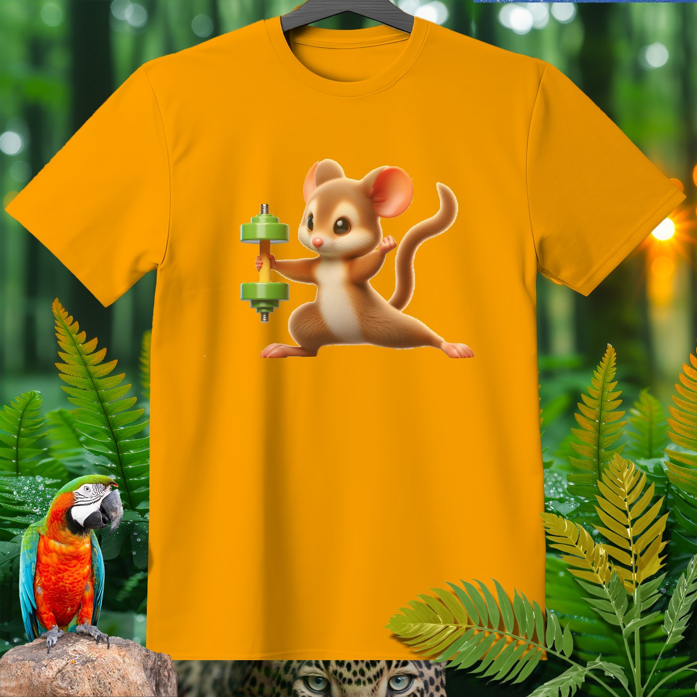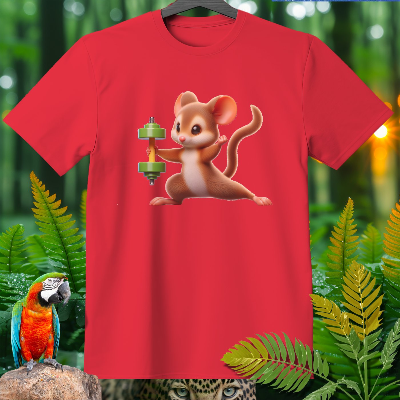 This adorable T-shirt features a cute mouse lifting a dumbbell, providing a fun and motivational touch for fitness enthusiasts and animal lovers alike. Made from high-quality materials, this shirt is perfect for casual wear, workouts, or as a unique gift. Show off your love for both fitness and cute animals with this charming and eye-catching design!