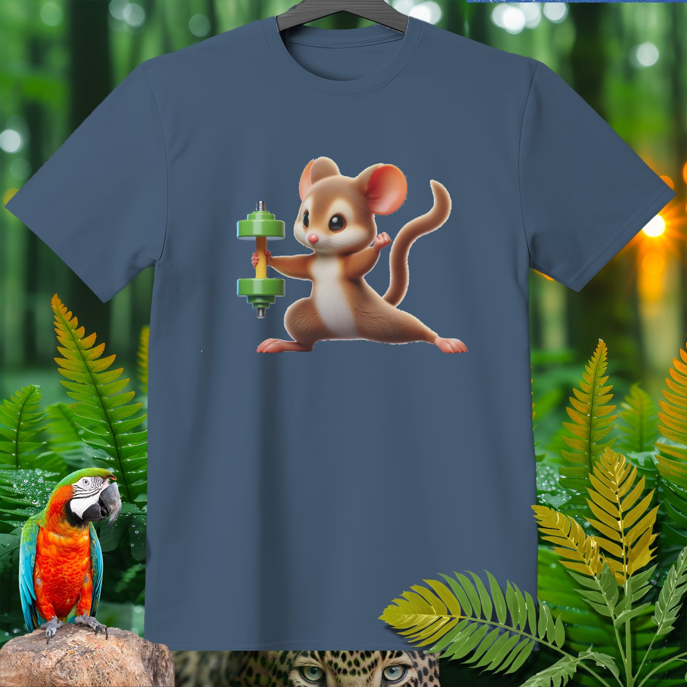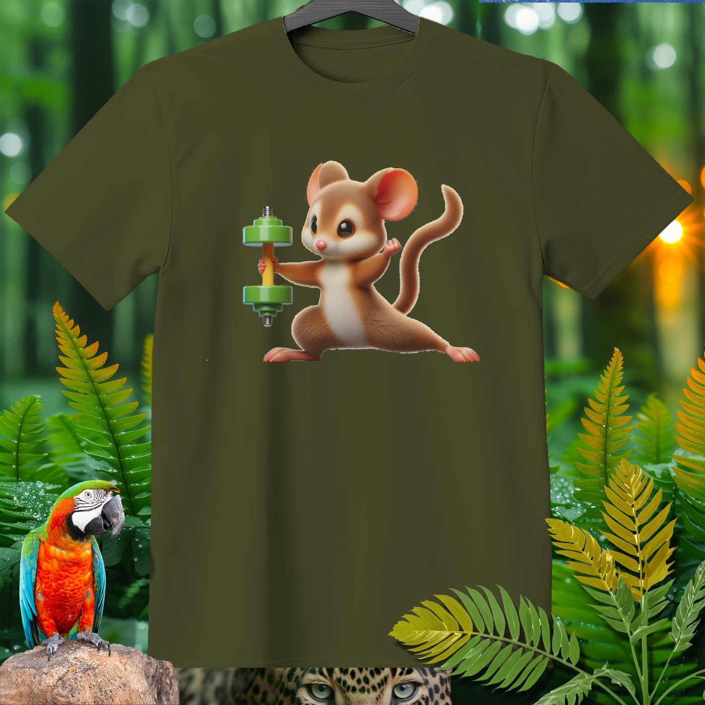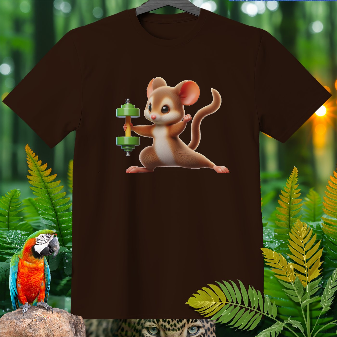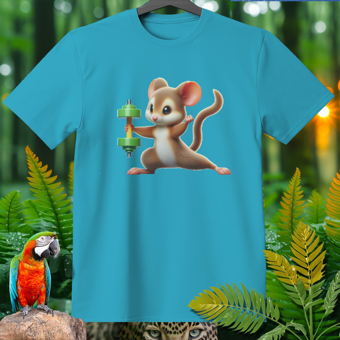 This adorable T-shirt features a cute mouse lifting a dumbbell, providing a fun and motivational touch for fitness enthusiasts and animal lovers alike. Made from high-quality materials, this shirt is perfect for casual wear, workouts, or as a unique gift. Show off your love for both fitness and cute animals with this charming and eye-catching design!