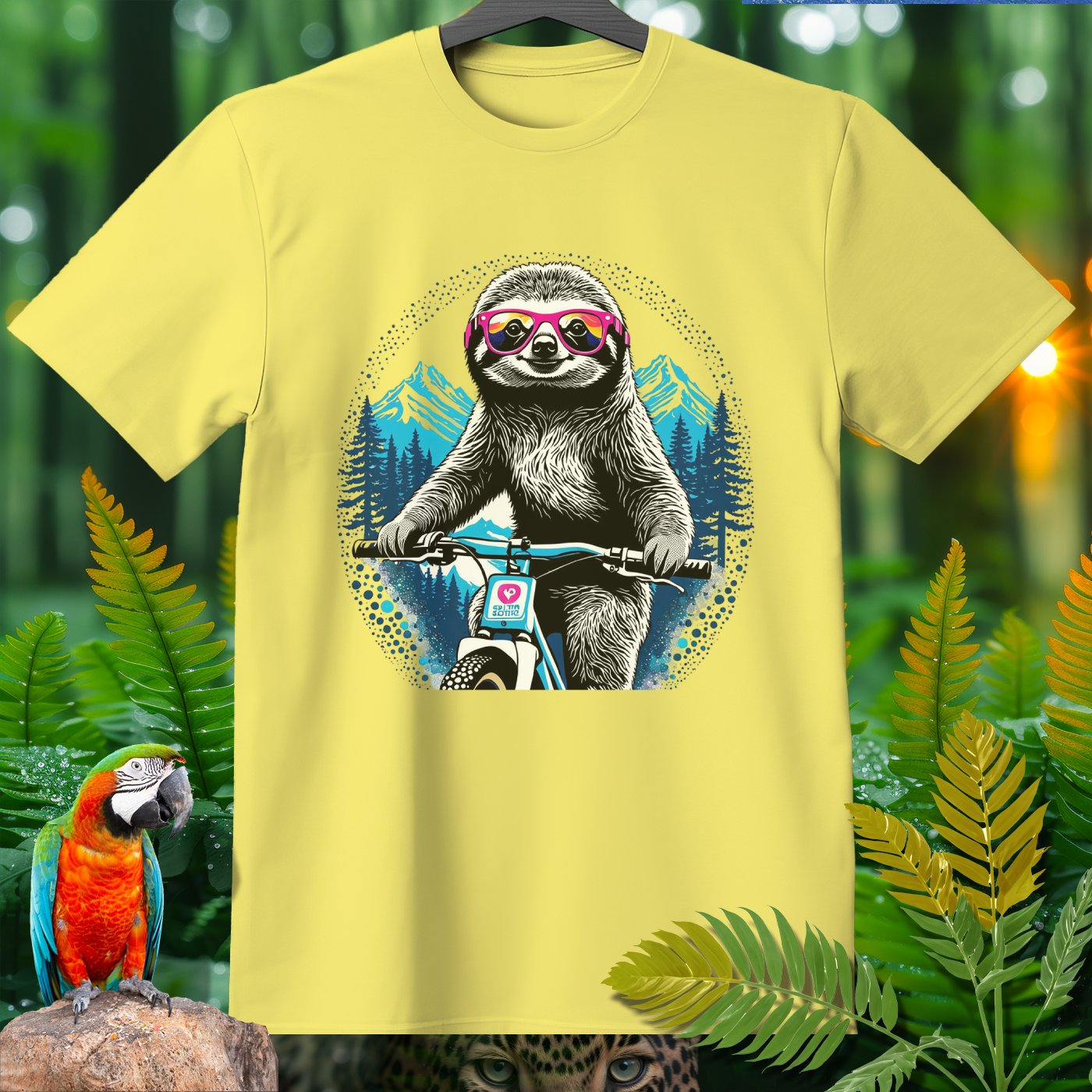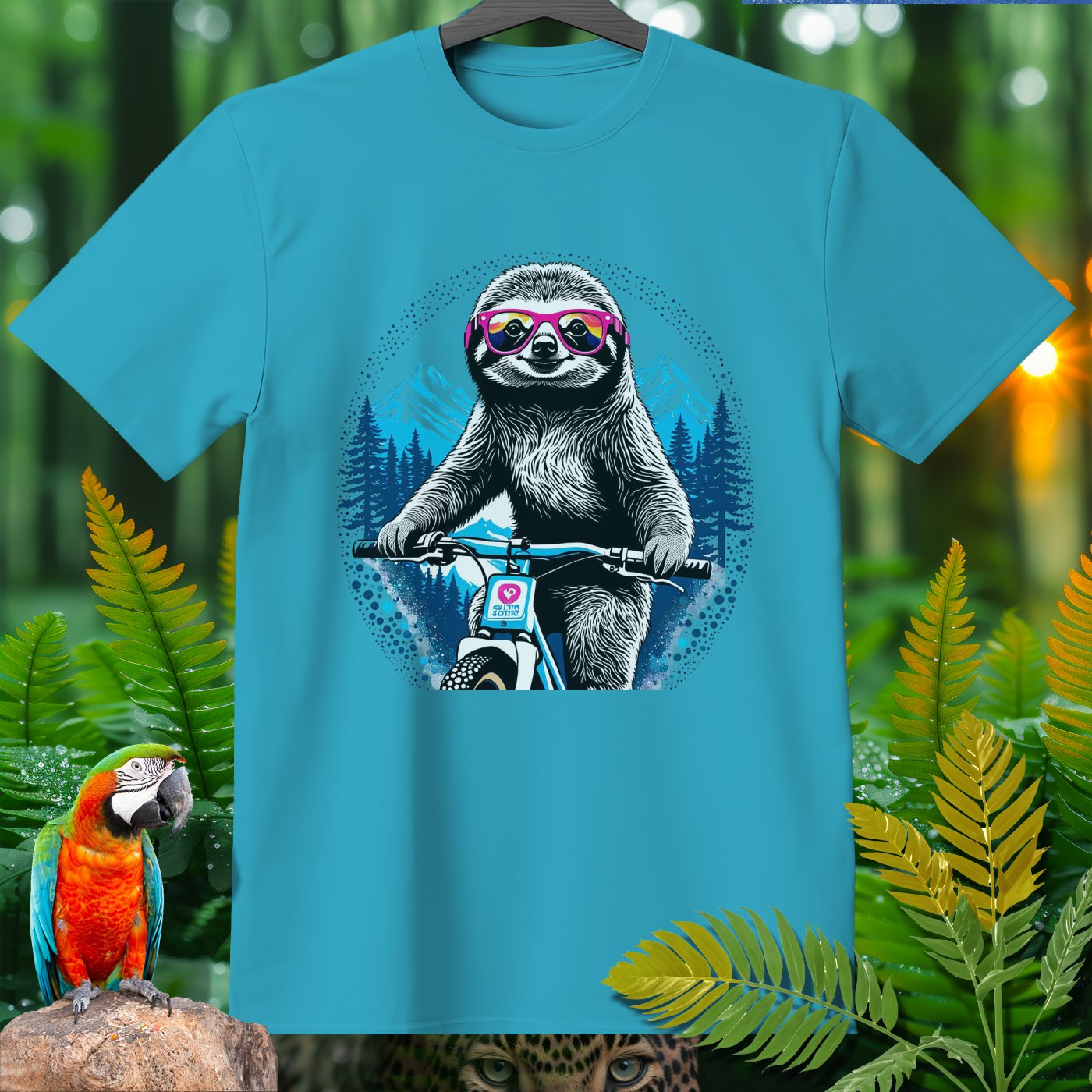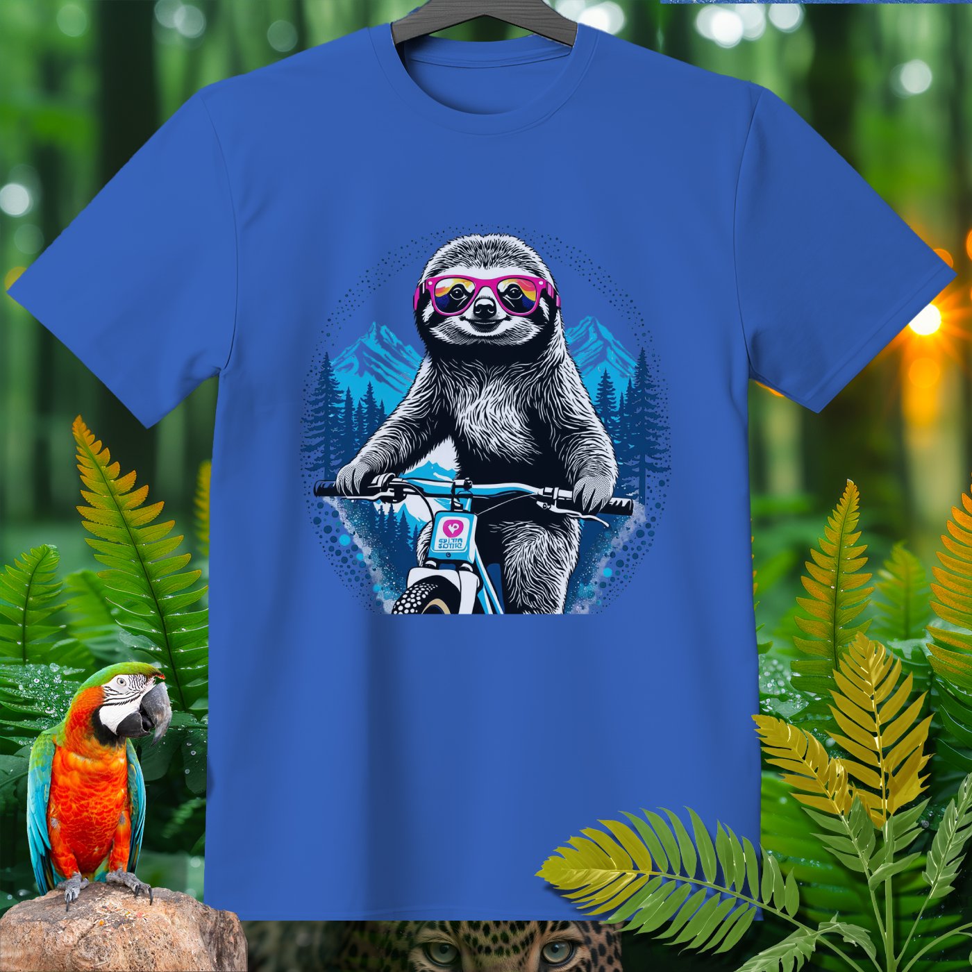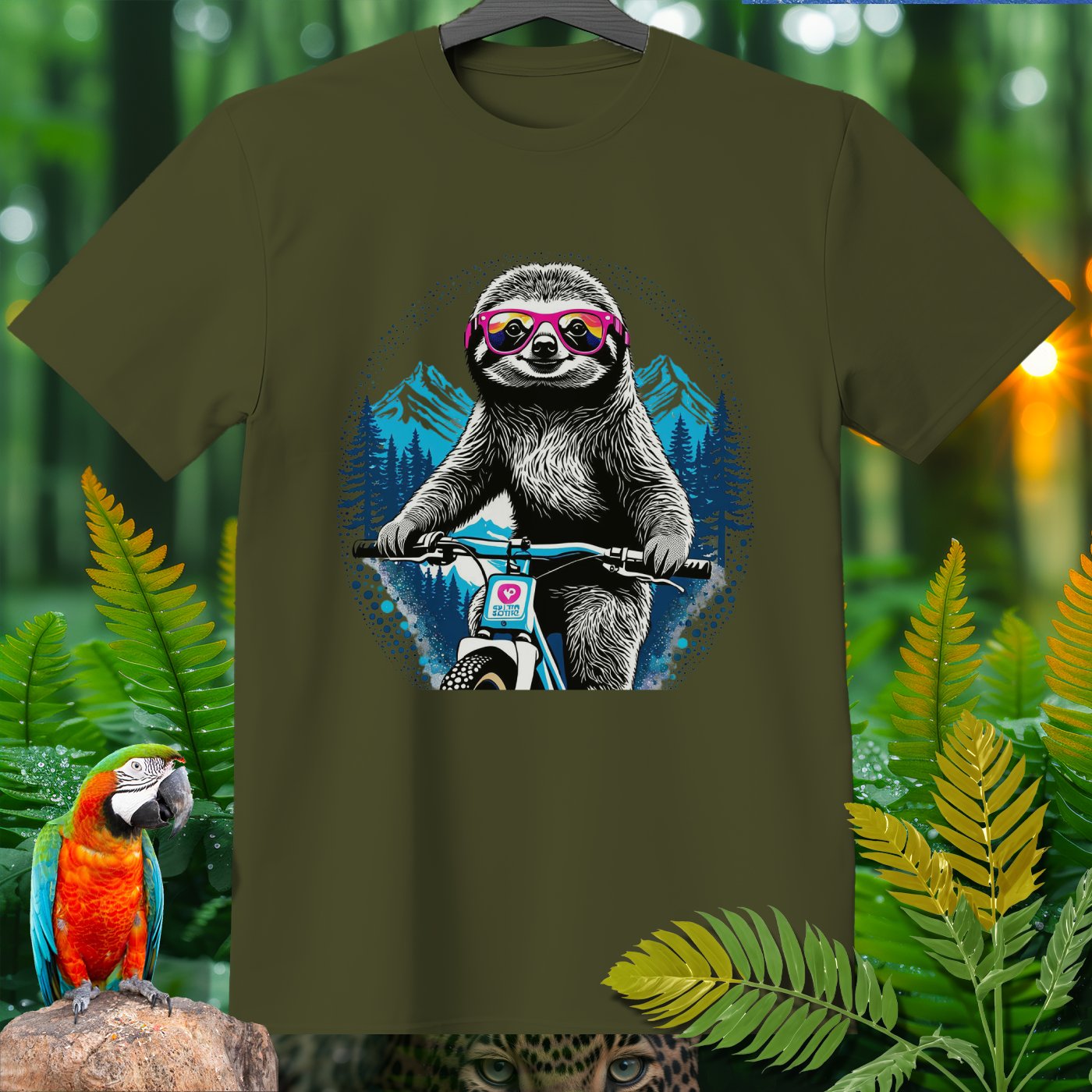 Ready to add some fun to your wardrobe? Check out this hilarious Amazoomania Collection T-shirt featuring a cool sloth rocking a pair of vibrant sunglasses and shredding it on a mountain bike! Whether you're a sport enthusiast or just looking for a laugh, this shirt is perfect for showcasing your wild side. Made from soft, high-quality fabric, you'll stay comfy while making a statement. Grab yours and let the world know that in the sport of life, you’re always in the fast lane!