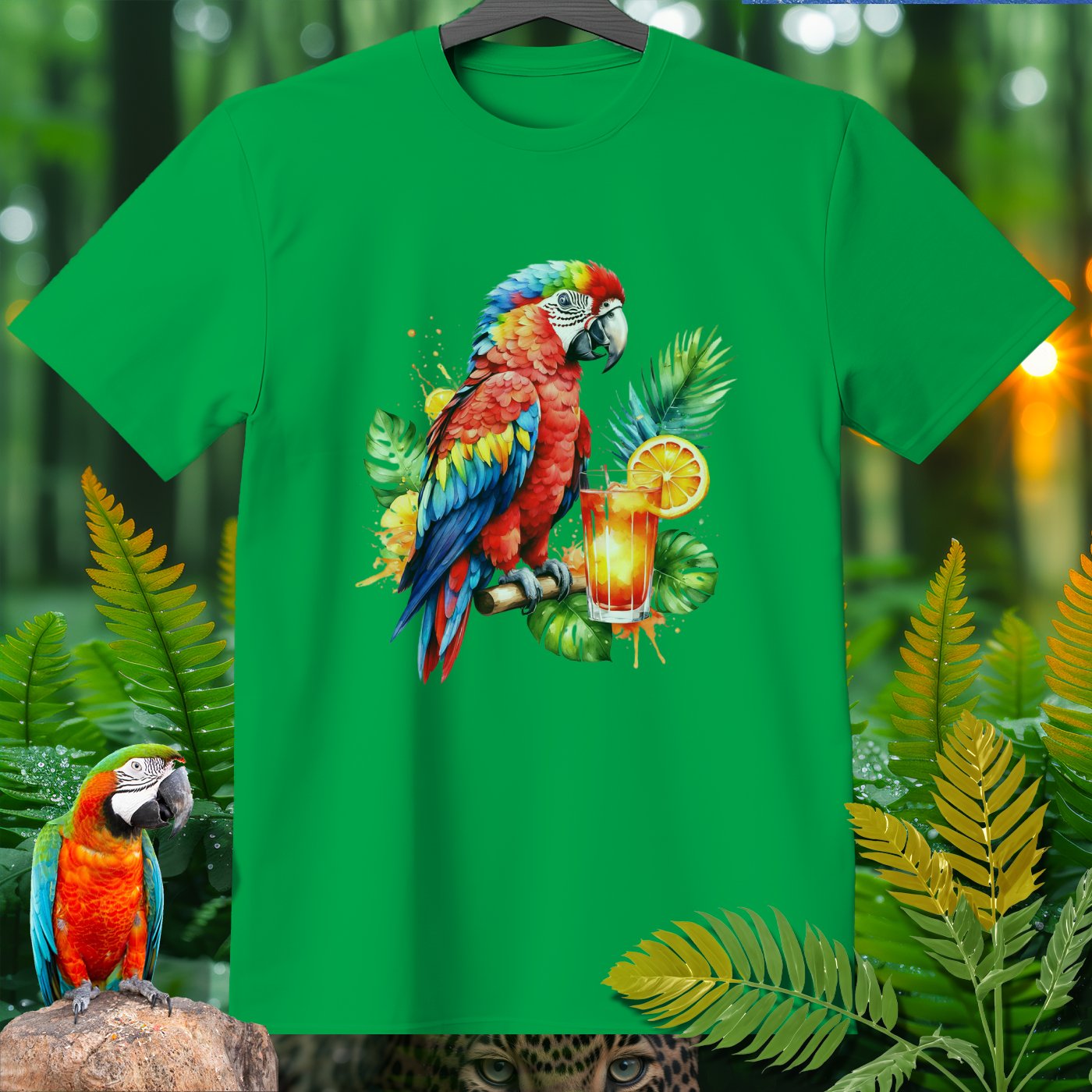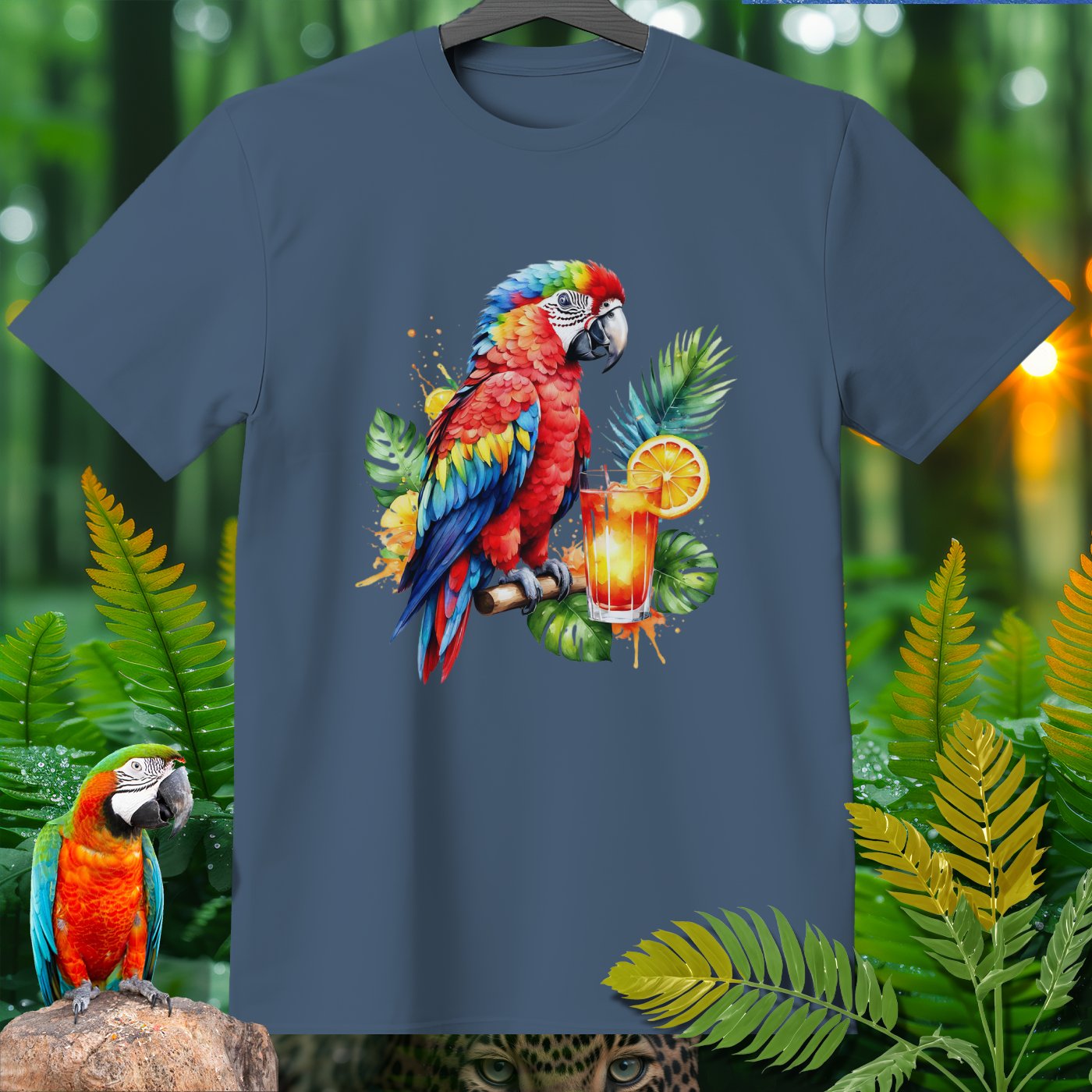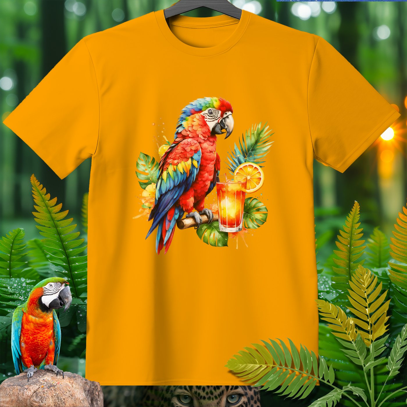 Celebrate the vibrant and lively spirit of nature with our AmazooMania T-Shirt! This eye-catching design features a stunning parrot perched next to a refreshing tropical drink, surrounded by lush green leaves and splashes of color. It's a perfect way to showcase your love for exotic wildlife and tropical adventures. Whether you're lounging at the beach, attending a summer festival, or simply enjoying a relaxed day, this shirt will keep you looking stylish and chilled out. Made from high-quality materials for ultimate comfort, this AmazooMania T-Shirt is a must-have for anyone who loves wild things and the colorful antics of animals when we aren't watching!