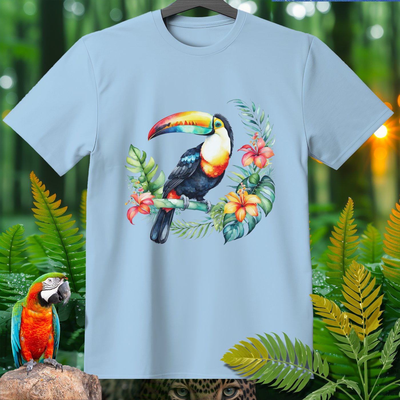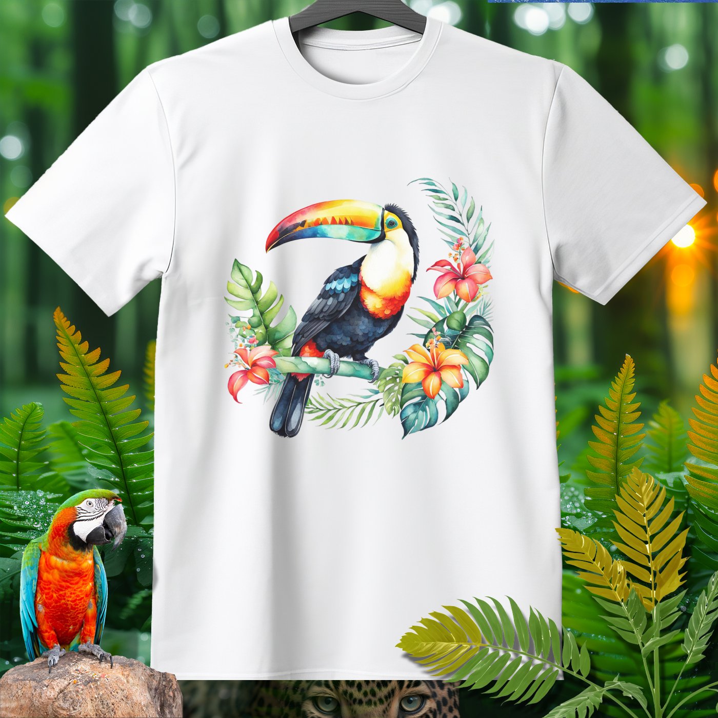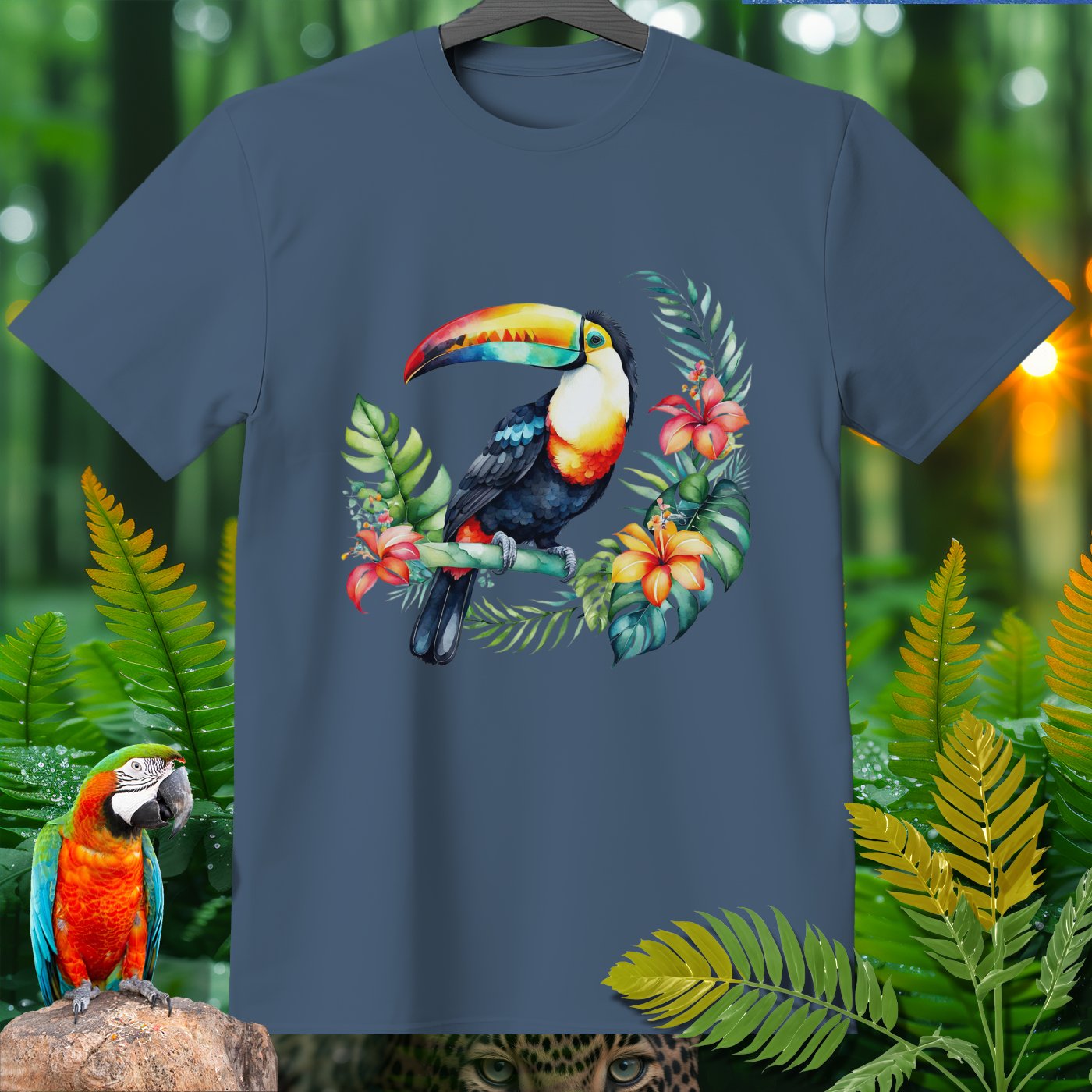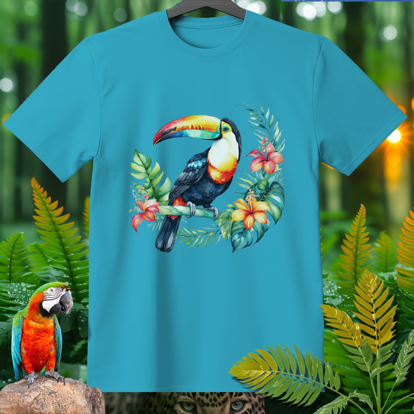 Dive into the jungle vibes with the AmazooMania T-Shirt, featuring vibrant and wild animals in their natural habitat! This t-shirt showcases a stunning toucan amidst lush tropical foliage and colorful flowers. Perfect for animal lovers and those who enjoy a touch of the exotic in their wardrobe. Made with soft, high-quality fabric, it provides comfort while making a bold statement. Unleash your wild side with AmazooMania and discover the amazing things animals do when we aren't watching!