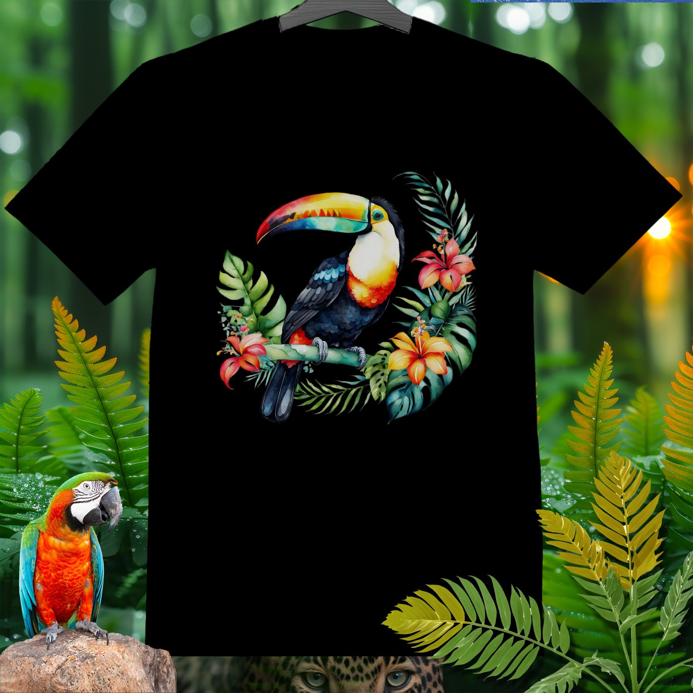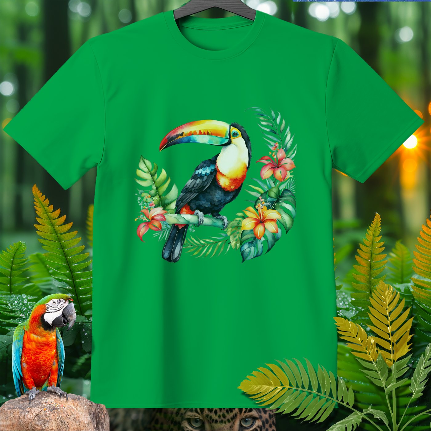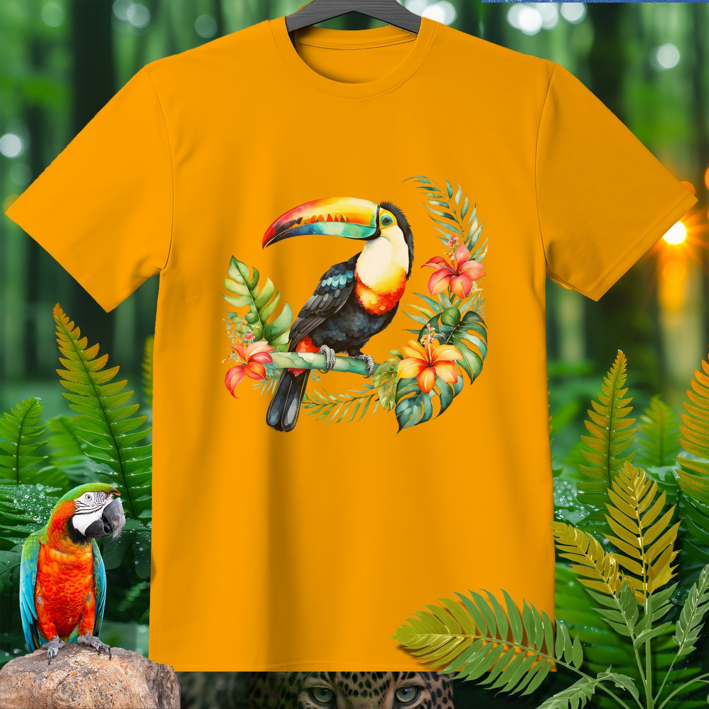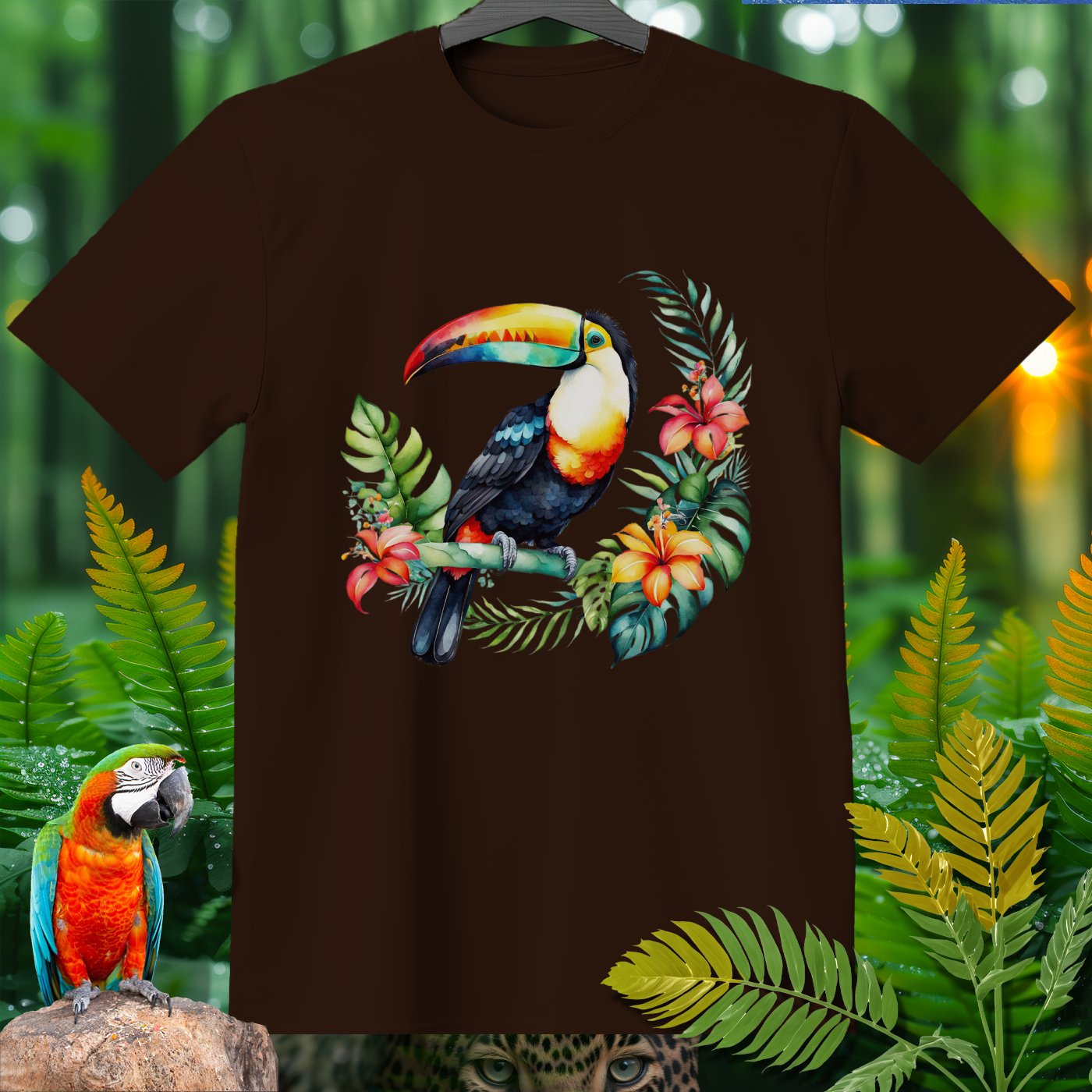 Dive into the jungle vibes with the AmazooMania T-Shirt, featuring vibrant and wild animals in their natural habitat! This t-shirt showcases a stunning toucan amidst lush tropical foliage and colorful flowers. Perfect for animal lovers and those who enjoy a touch of the exotic in their wardrobe. Made with soft, high-quality fabric, it provides comfort while making a bold statement. Unleash your wild side with AmazooMania and discover the amazing things animals do when we aren't watching!