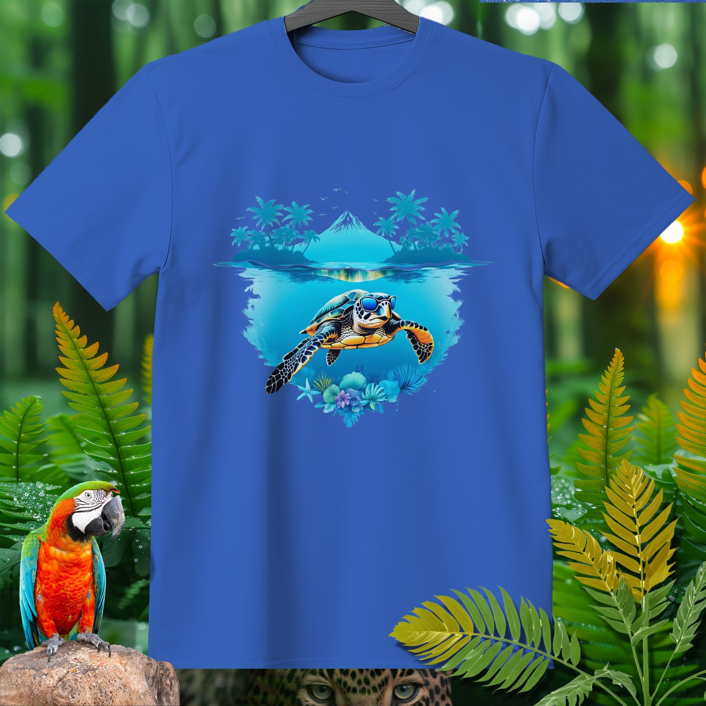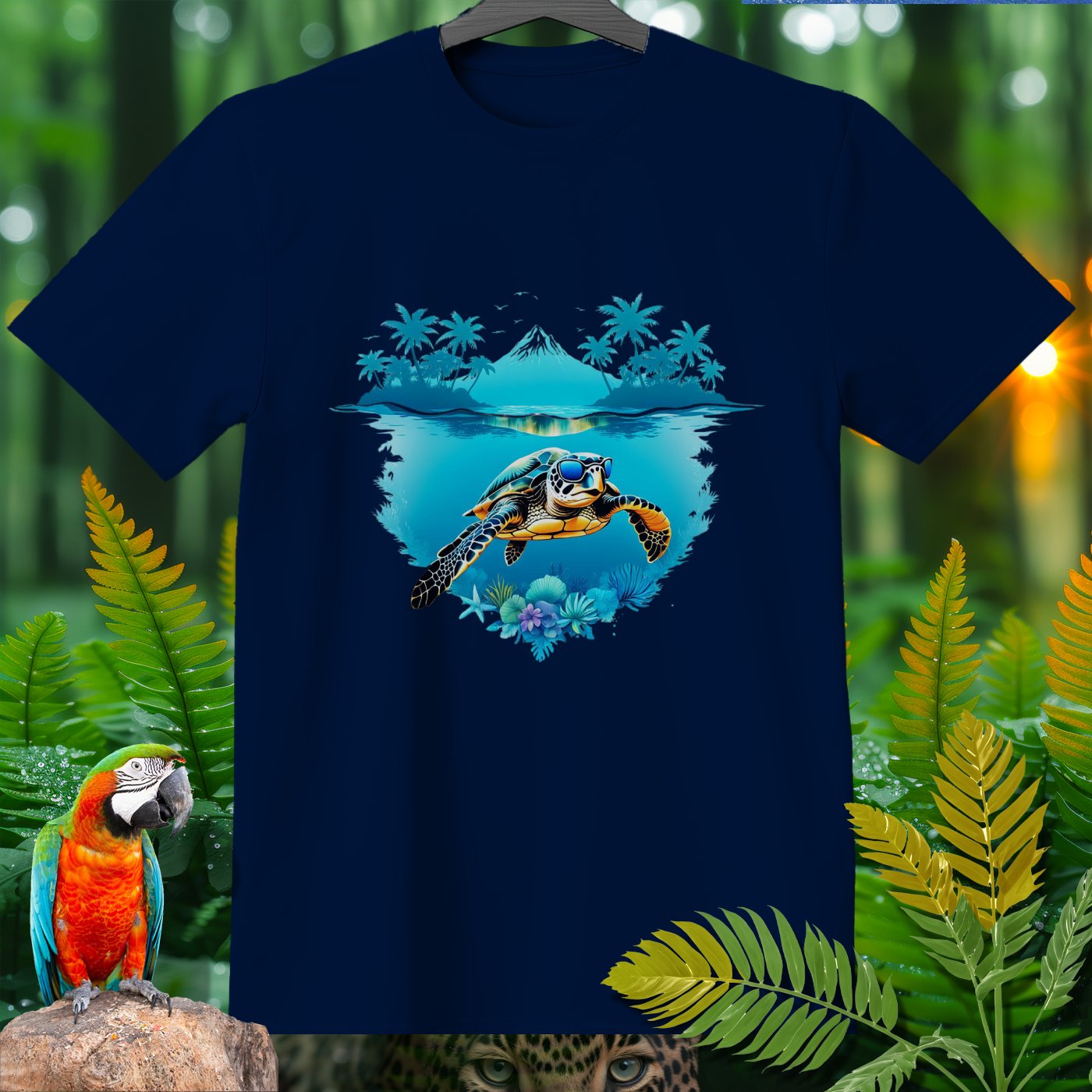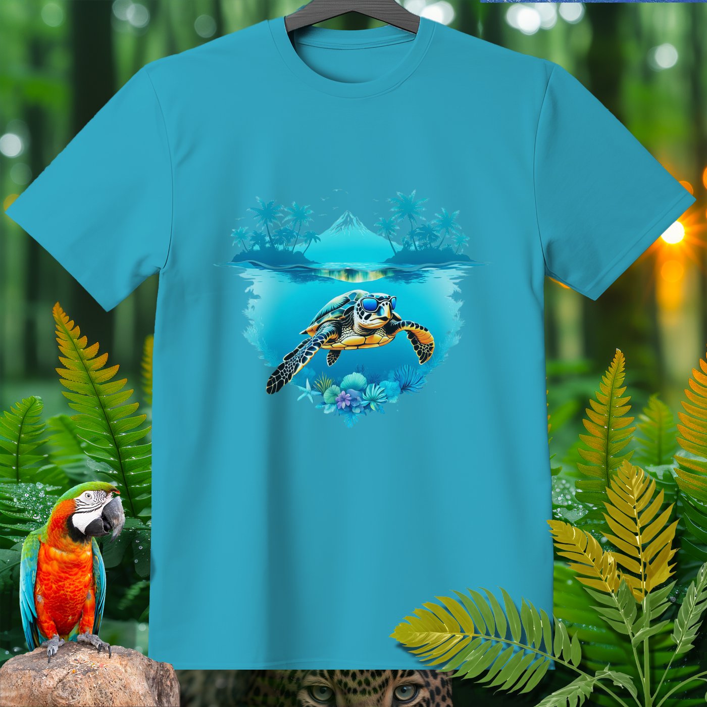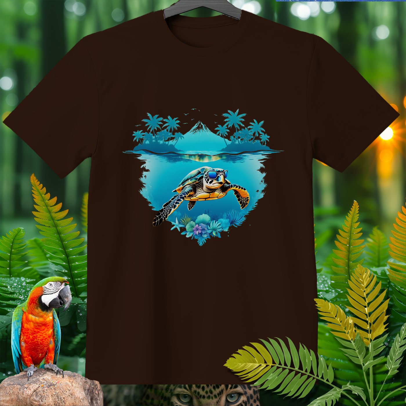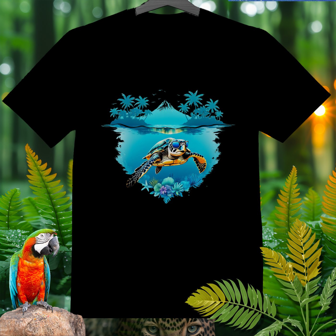 Dive into the vibrant world of AmazooMania with our stunning sea turtle T-Shirt! Featuring a cool turtle sporting shades amidst a tropical island backdrop, this tee captures the essence of chill and adventure. Perfect for nature lovers and those with a wild side, let this shirt remind you of the amazing things animals do when we're not watching.