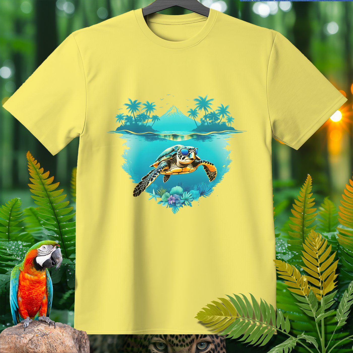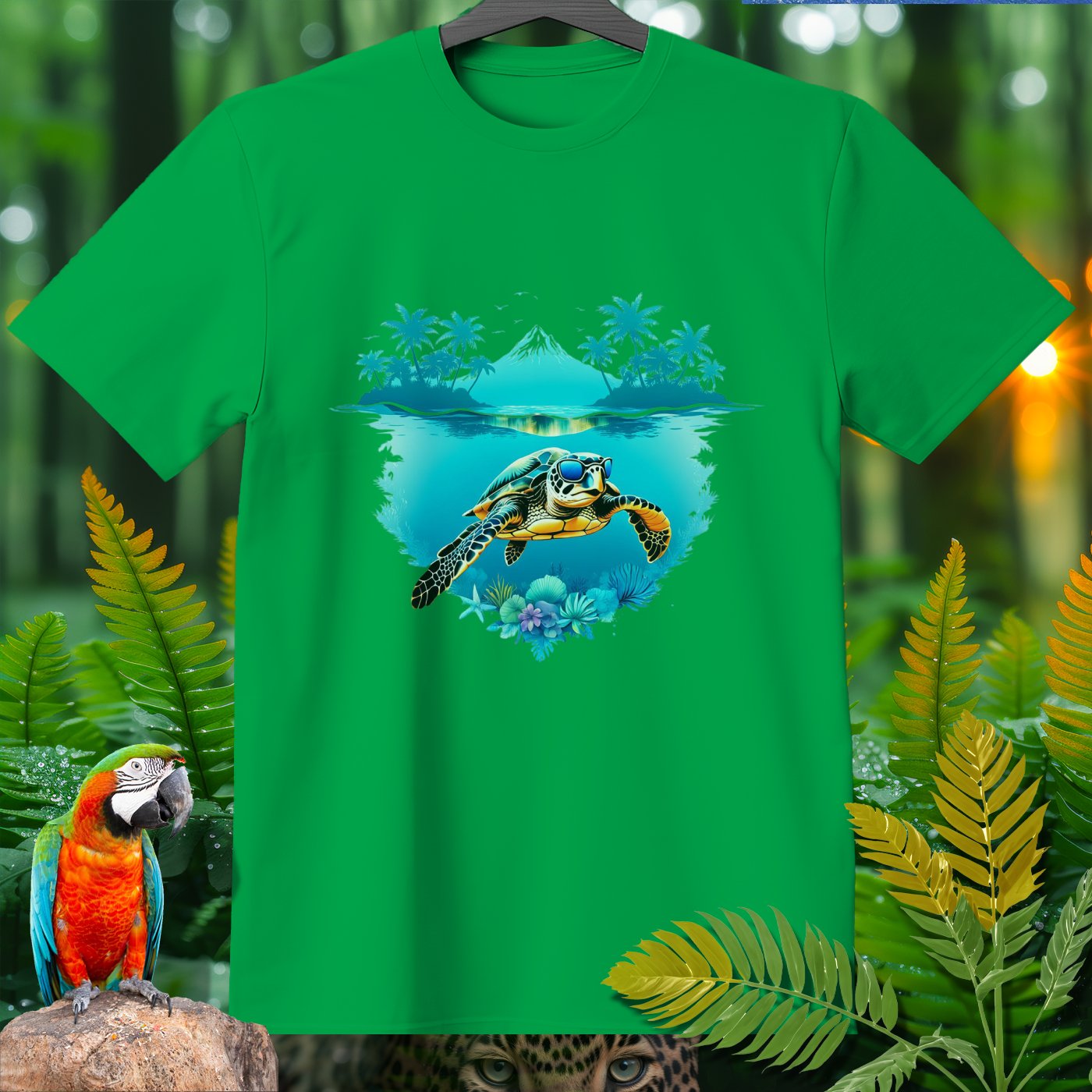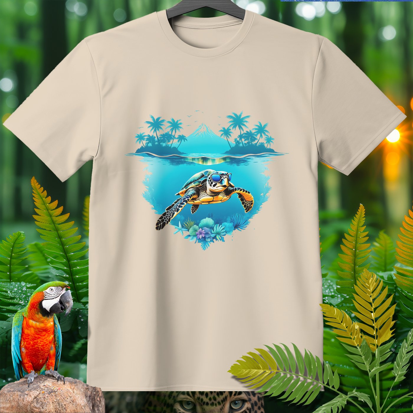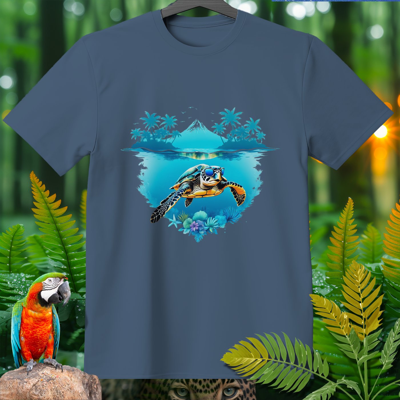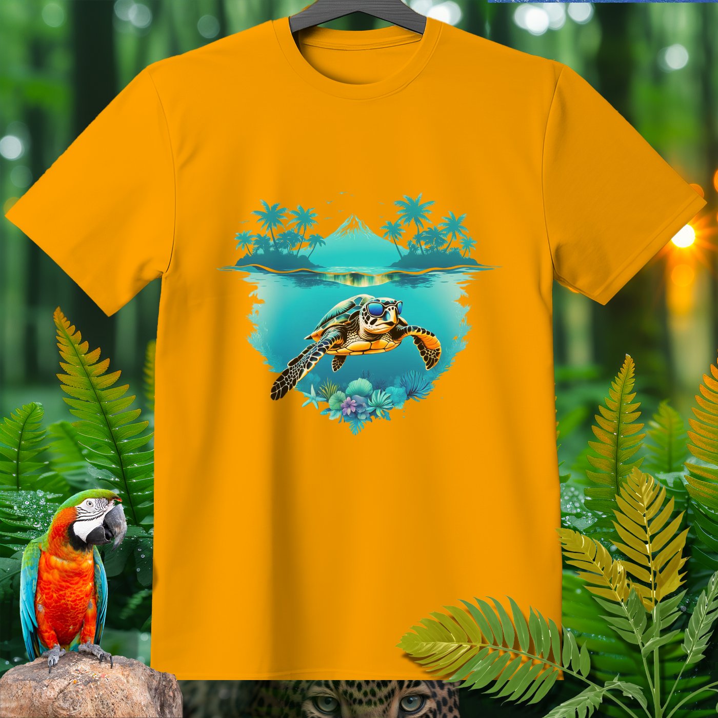 Dive into the vibrant world of AmazooMania with our stunning sea turtle T-Shirt! Featuring a cool turtle sporting shades amidst a tropical island backdrop, this tee captures the essence of chill and adventure. Perfect for nature lovers and those with a wild side, let this shirt remind you of the amazing things animals do when we're not watching.
